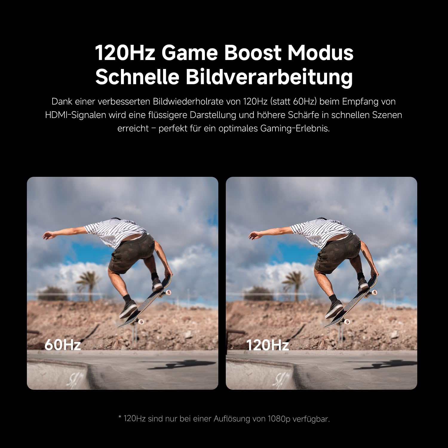 - Game Boost Modus: Profitieren Sie von einer flüssigen Darstellung bei schnellen Spielszenen dank einer Bildwiederholrate von 120 Hz über HDMI.