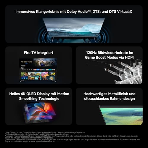 - Display: Helles 4K-QLED-Panel mit MEMC-Bewegungsglättung