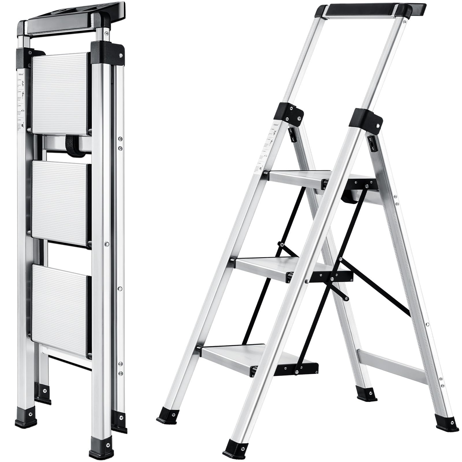 XinSunho Stufenleiter Klapptritt – 3 Stufen Aluminium mit Handlauf