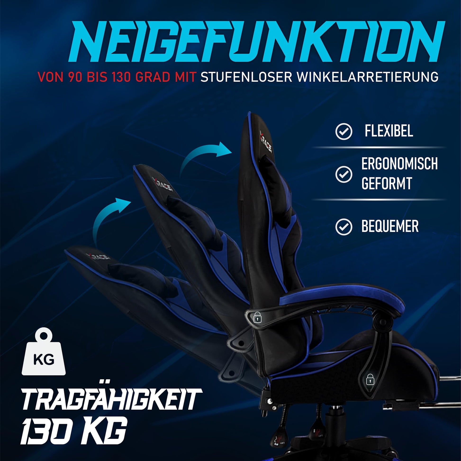 xRace Gaming Stuhl Ergonomischer Lederbürostuhl – Blau