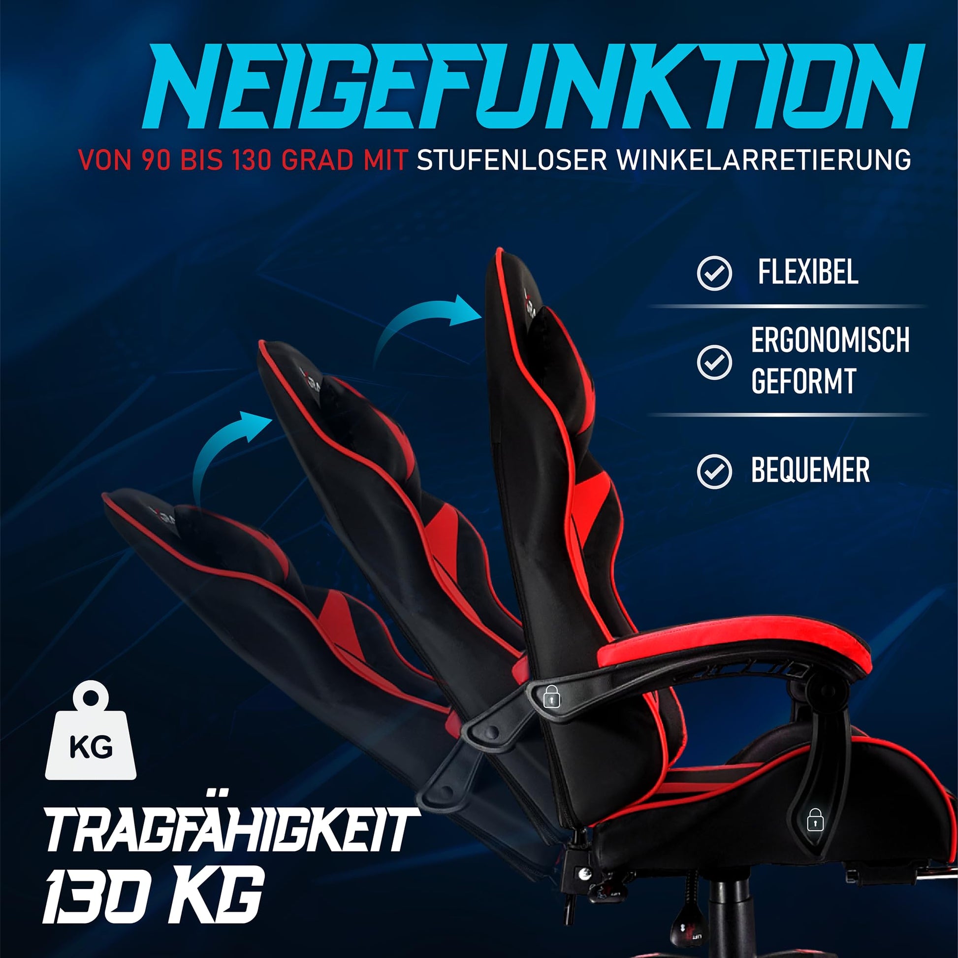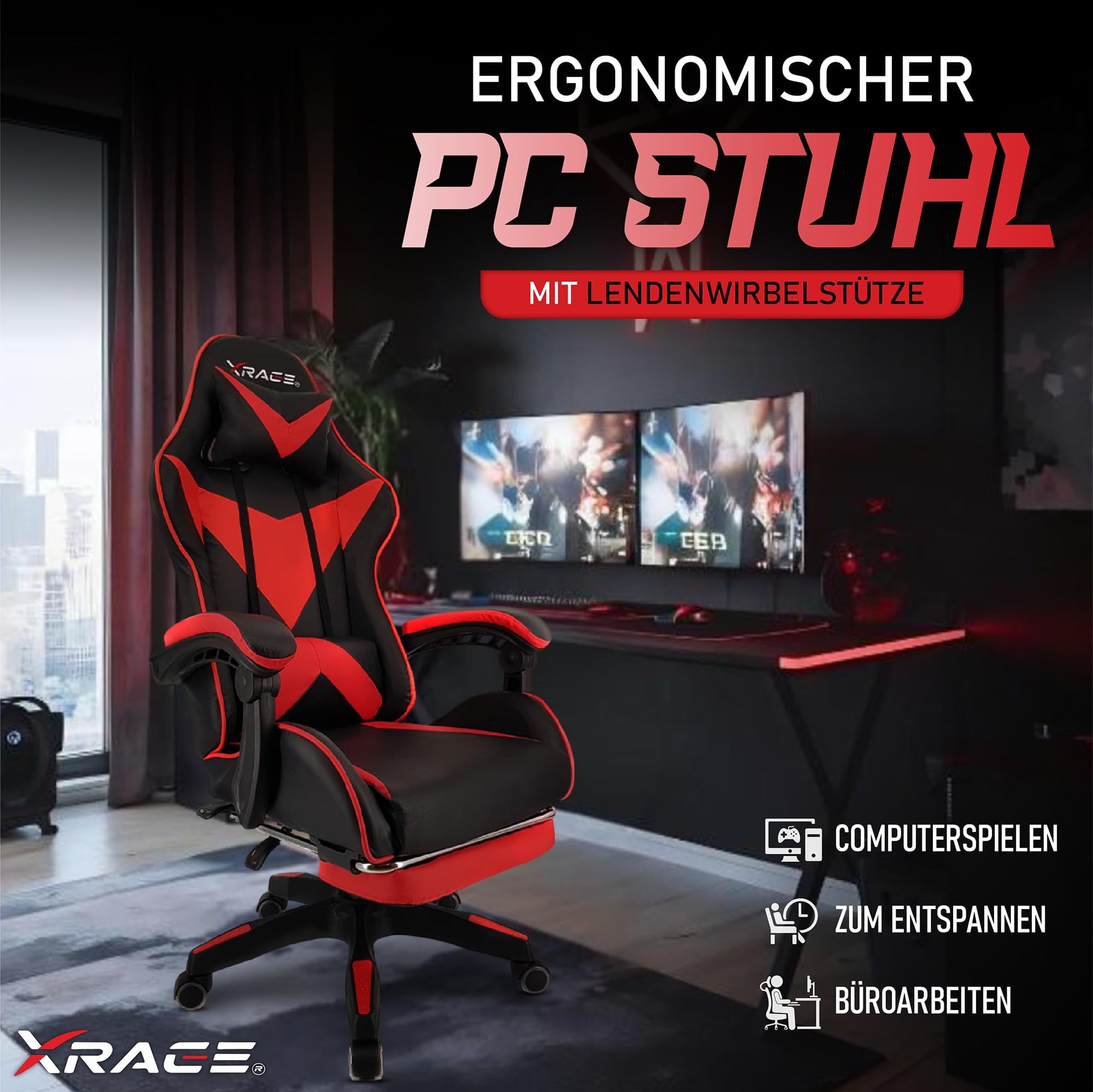 xRace Gaming Stuhl Ergonomischer Bürostuhl - Rot mit Fussstuetze