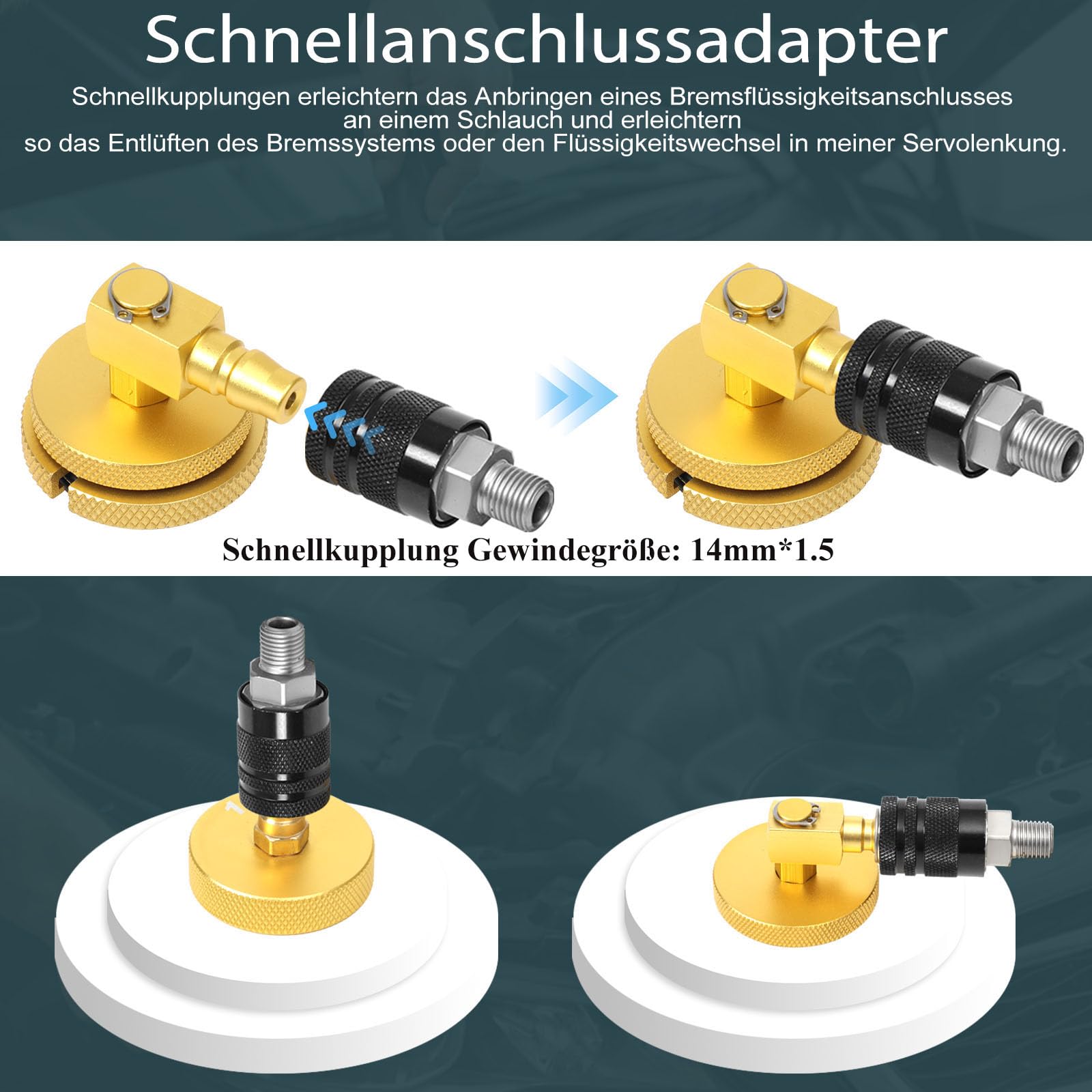 Dieses 17-teilige Adapter-Set ist das ideale Werkzeug für das professionelle Entlüften von Bremssystemen und den Wechsel von Servolenkungsflüssigkeit. Es eignet sich gleichermassen für professionelle Werkstätten und ambitionierte Hobbymechaniker, die Wert auf zuverlässiges Werkzeug legen.