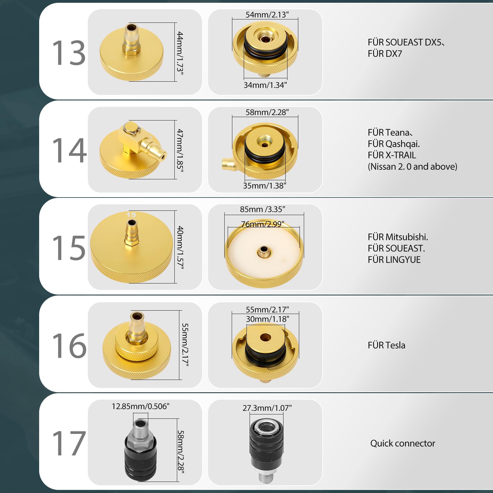 - Umfassendes Set: Beinhaltet 17 verschiedene Adapter, um eine breite Palette von Fahrzeugen abzudecken.