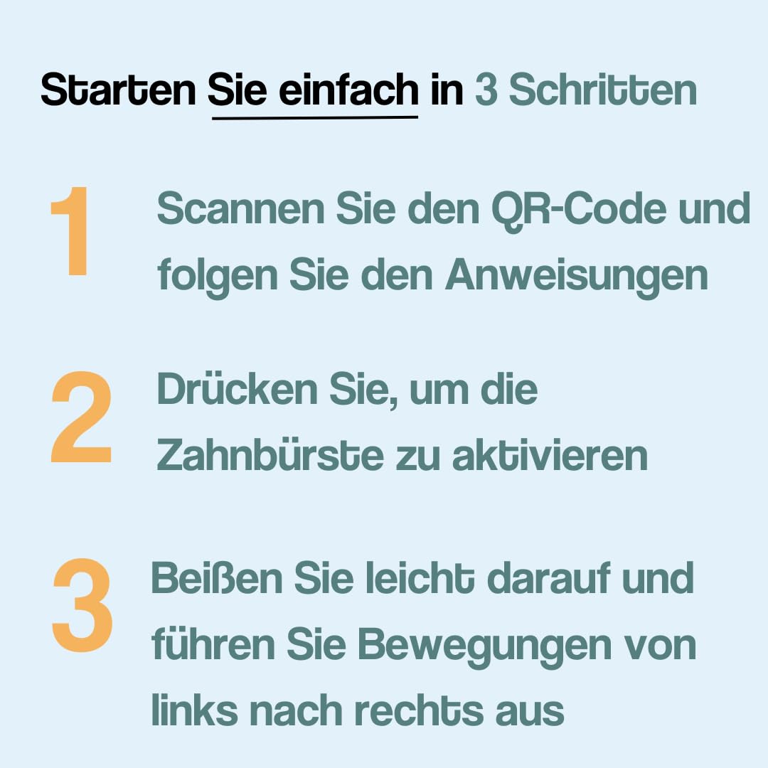 Dank des patentierten Y-Designs werden alle Zähne eines Kiefers gleichzeitig geputzt. Die Anwendung dauert nur 10 Sekunden pro Kiefer. Man trägt Zahnpasta auf, beisst leicht zu und bewegt die Bürste sanft von links nach rechts.