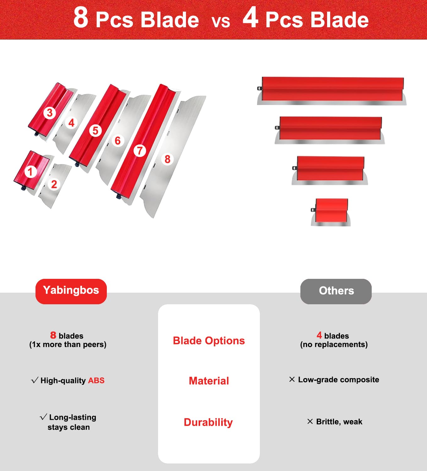 - Robuste Materialien: Die Spachtelkörper bestehen aus leichtem ABS-Kunststoff und die Klingen aus hochwertigem, rostfreiem Edelstahl für Langlebigkeit und Verschleissfestigkeit.