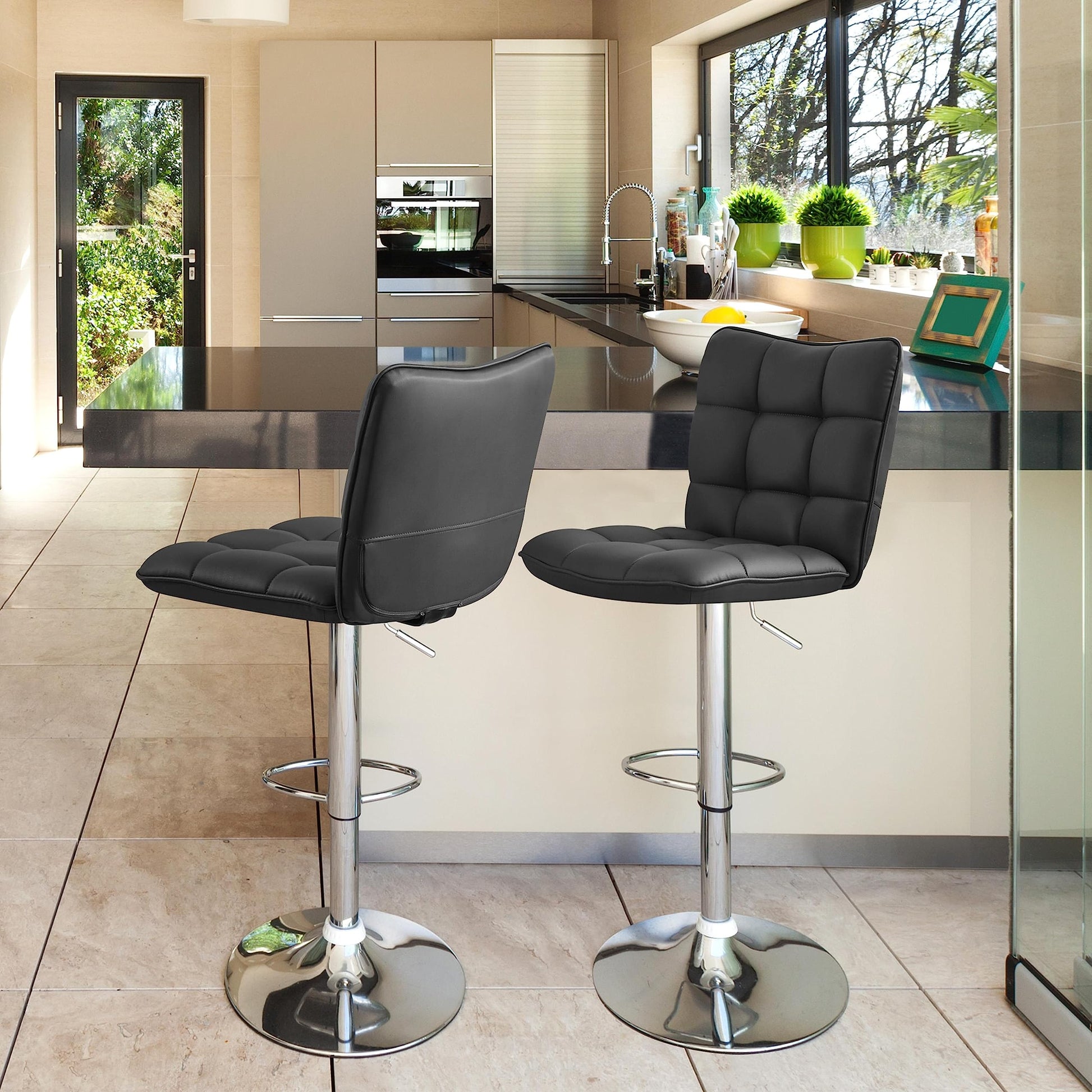 Yaheetech 2er Set drehbar Kunstleder Barhocker - Schwarz
