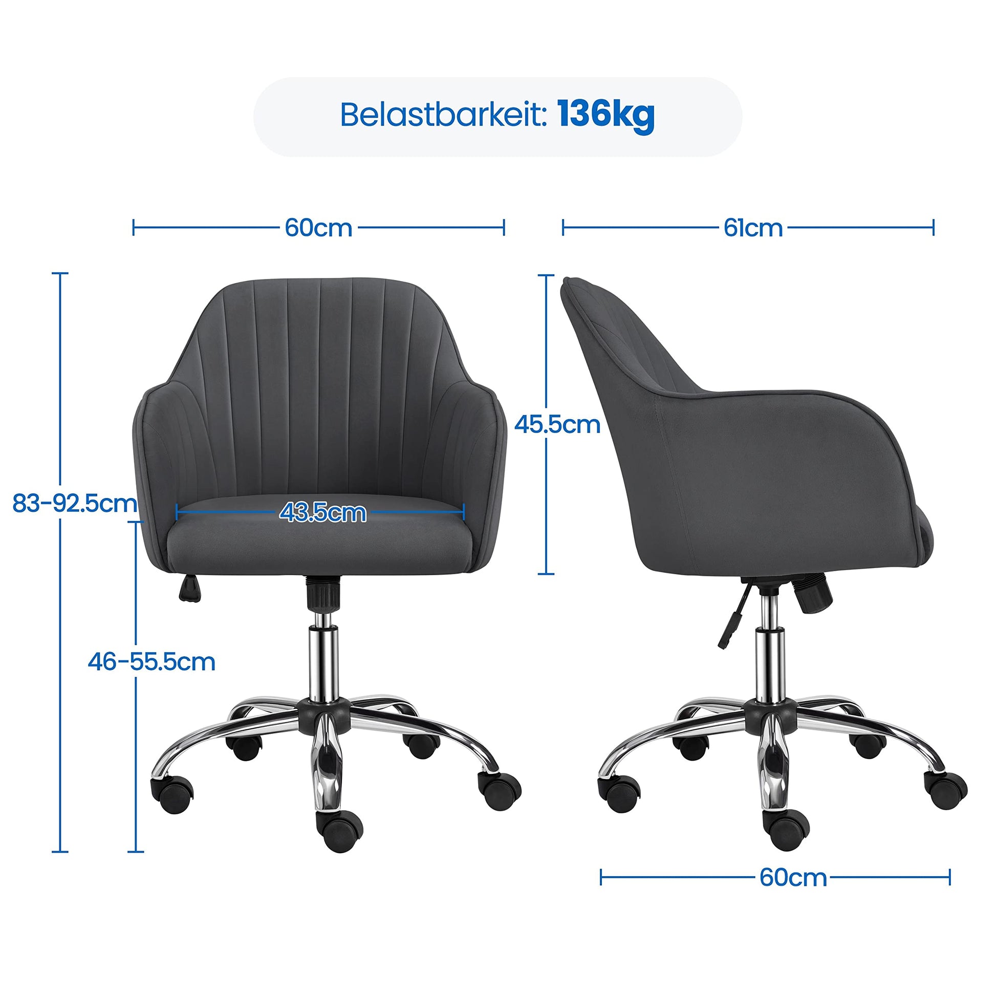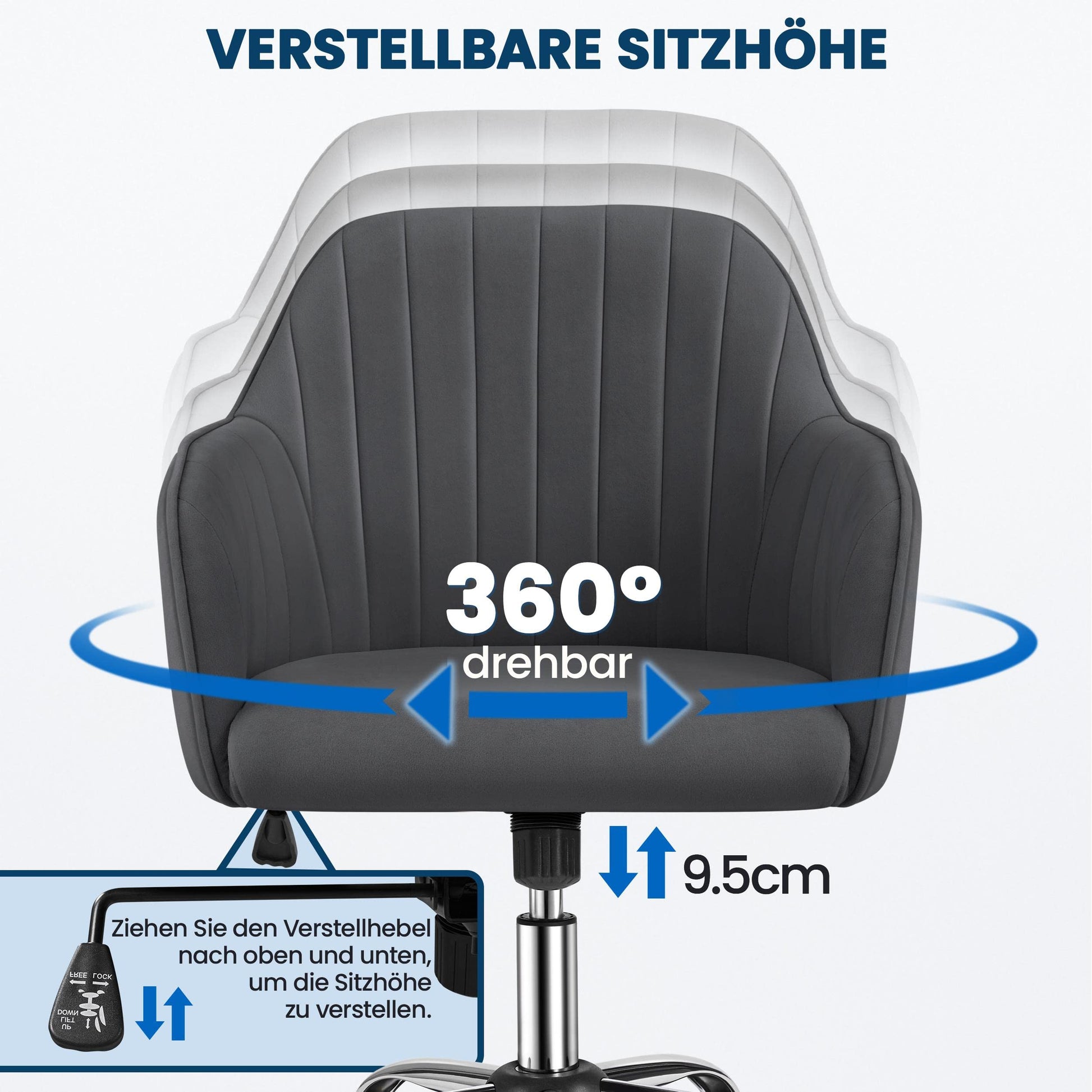 Yaheetech Bürostuhl Drehstuhl Homeoffice Samt - Dunkelgrau