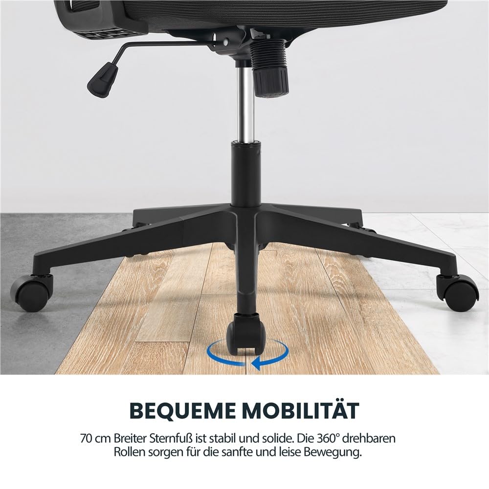 Verlassen Sie sich auf eine Konstruktion, die auf Sicherheit und Dauerhaftigkeit ausgelegt ist. Der breite Sternfuss sorgt für einen stabilen Stand, während die geprüften Materialien und Komponenten die Gewissheit einer sicheren und langlebigen Investition in Ihre Arbeitsplatzausstattung geben.