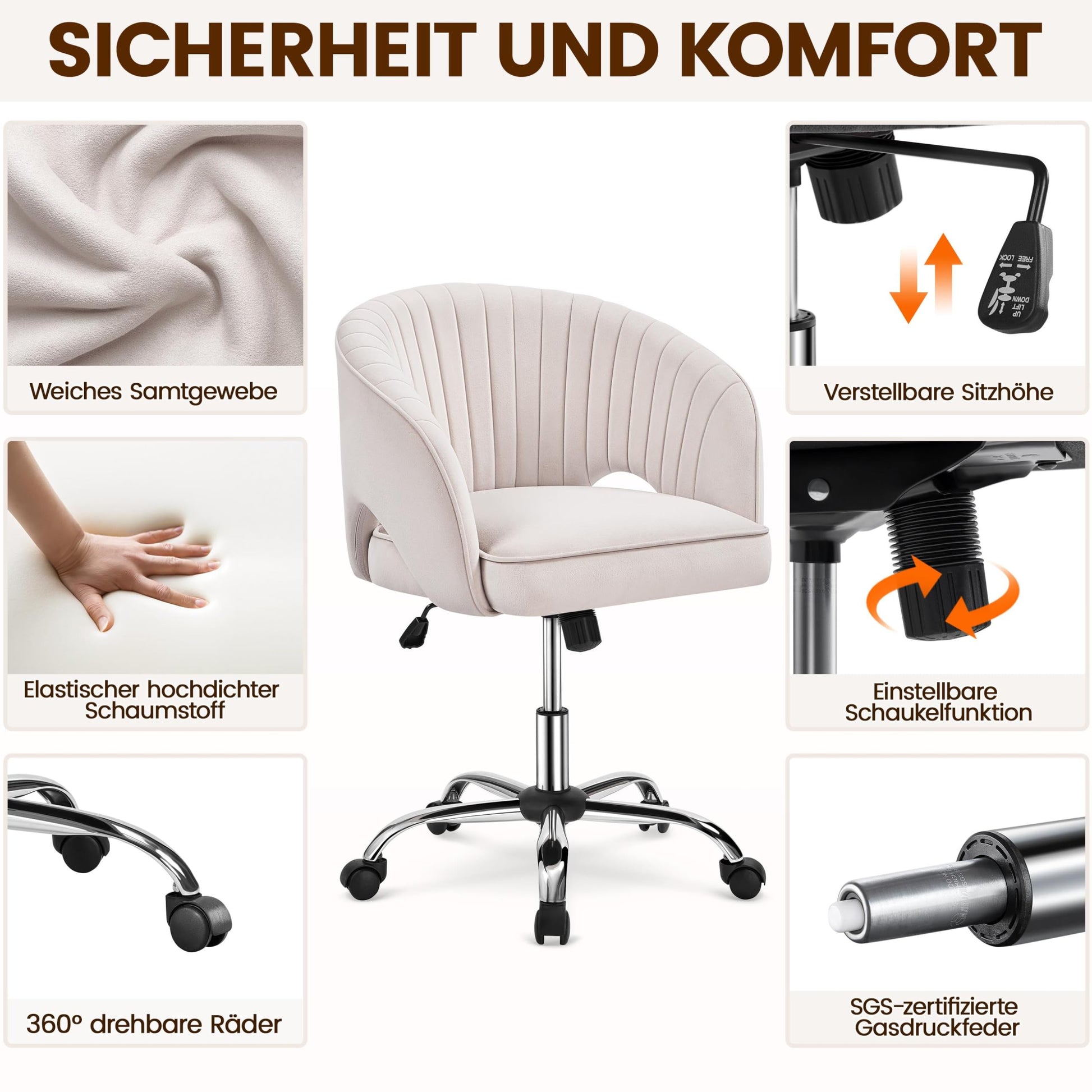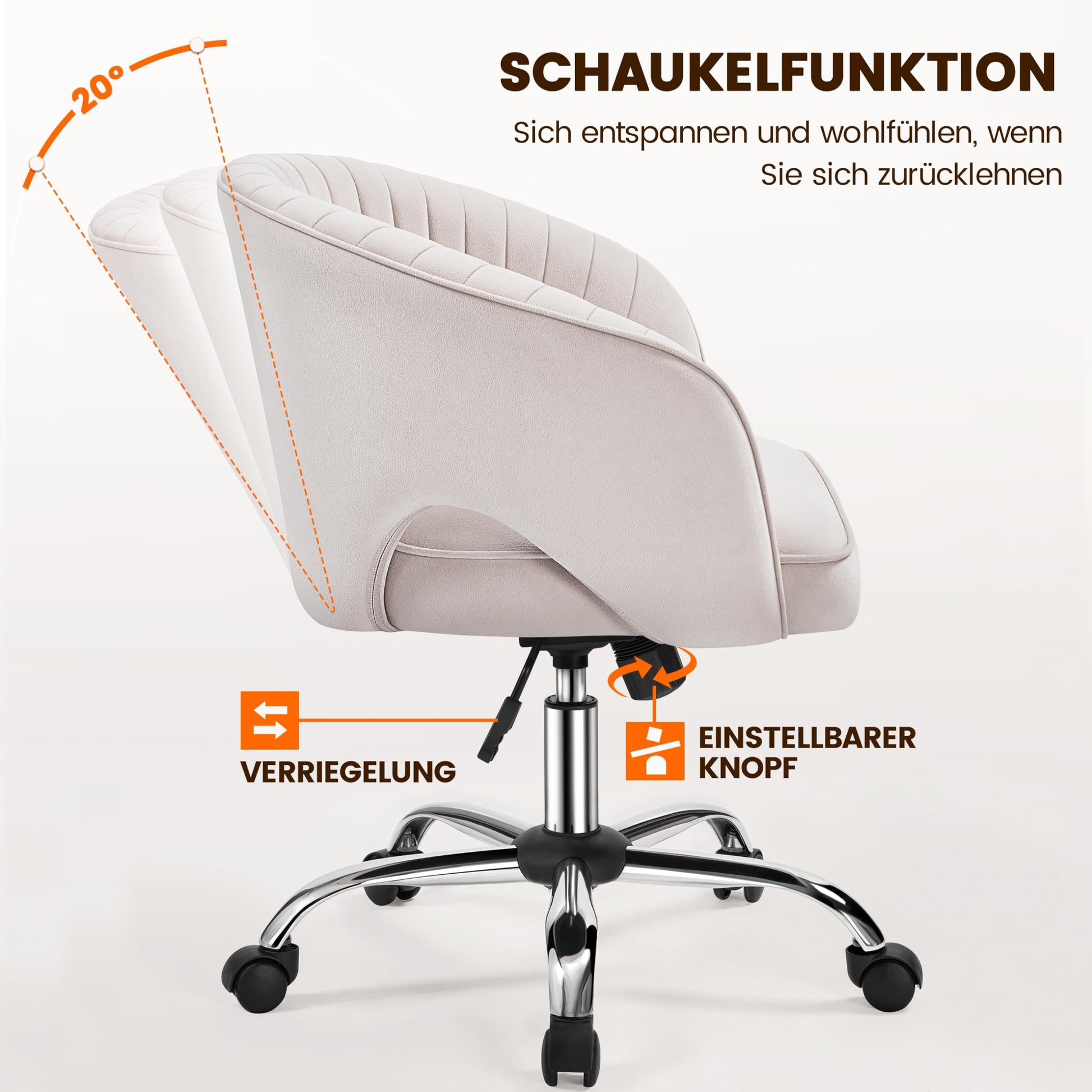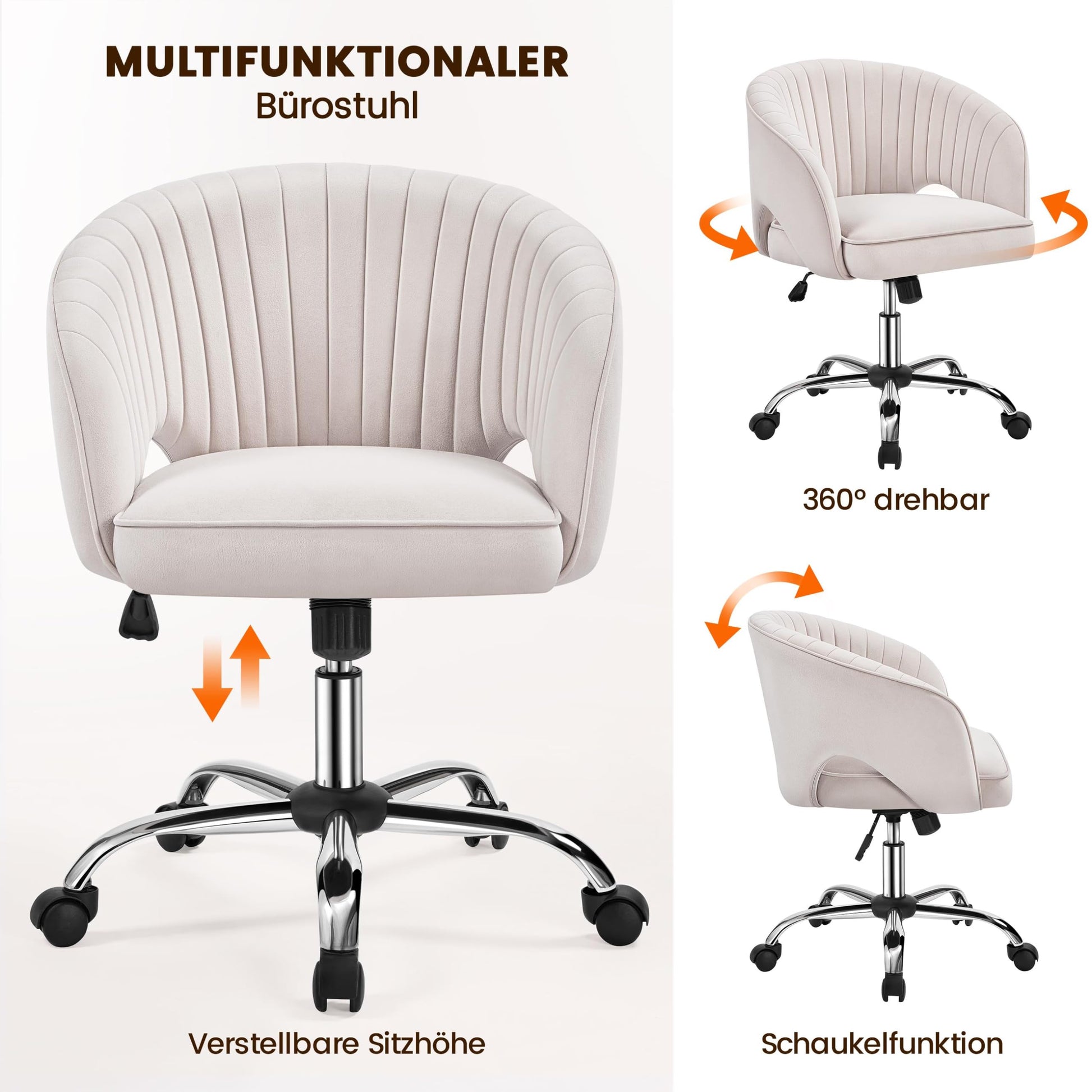 Yaheetech Schreibtischstuhl Drehstuhl Samt - Cremeweiss