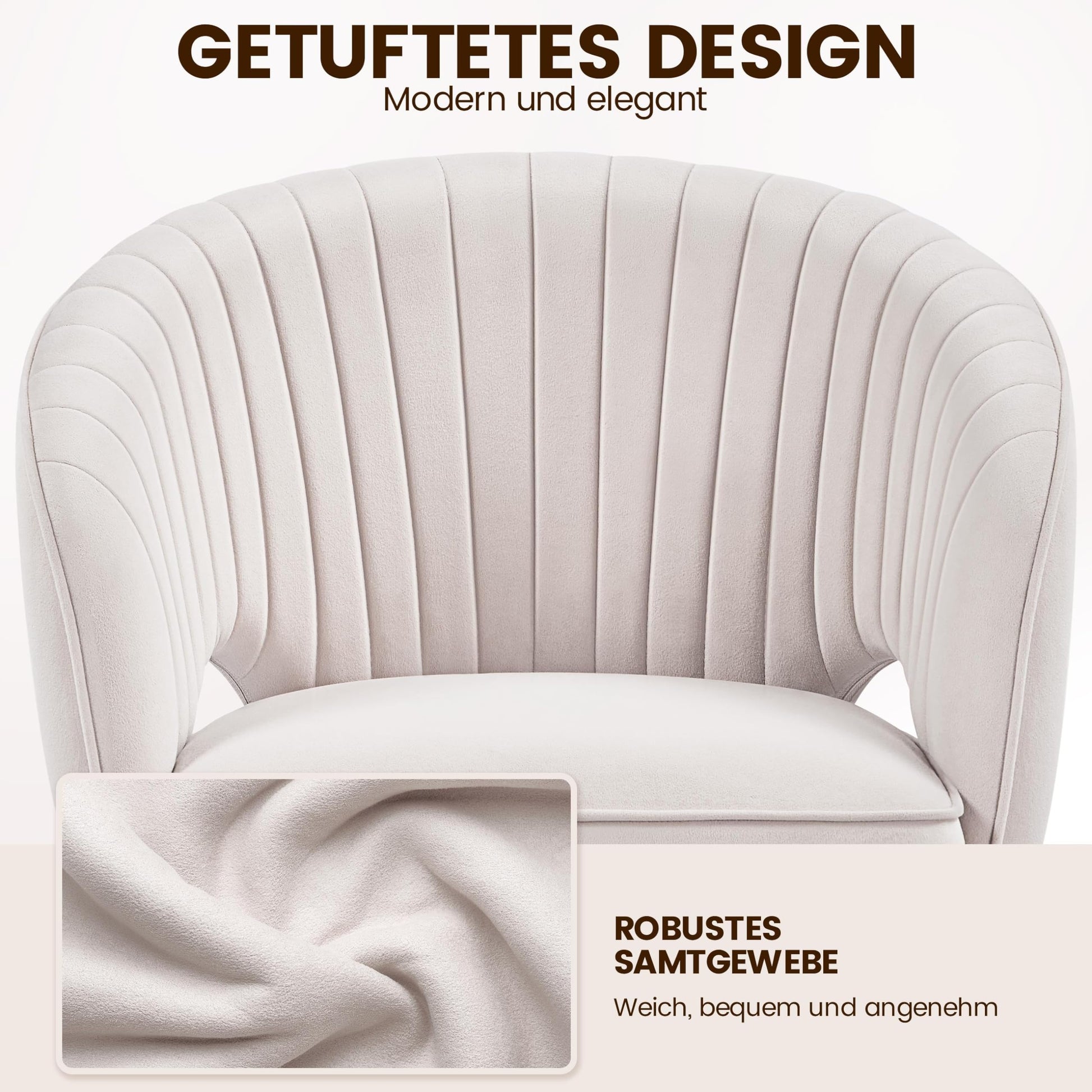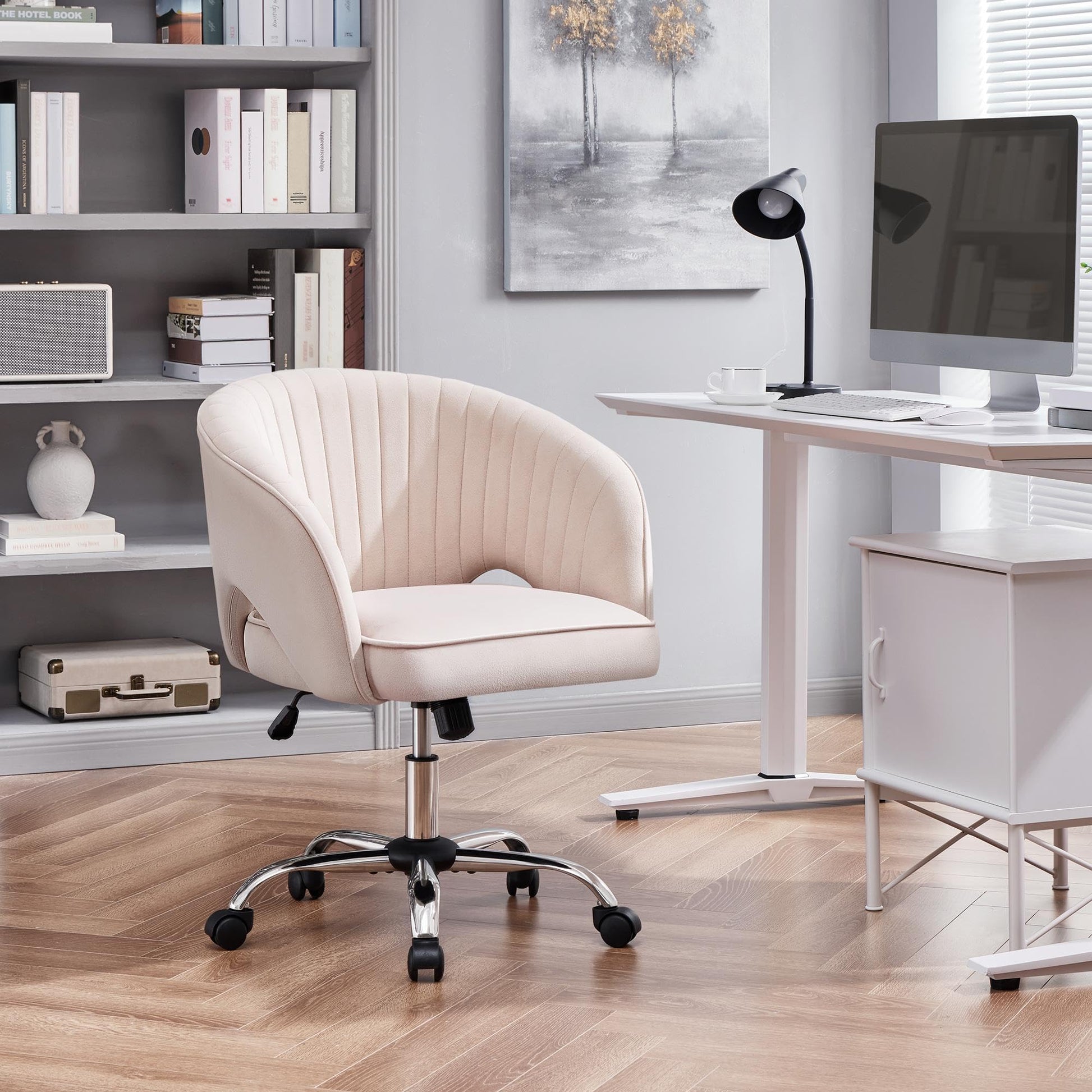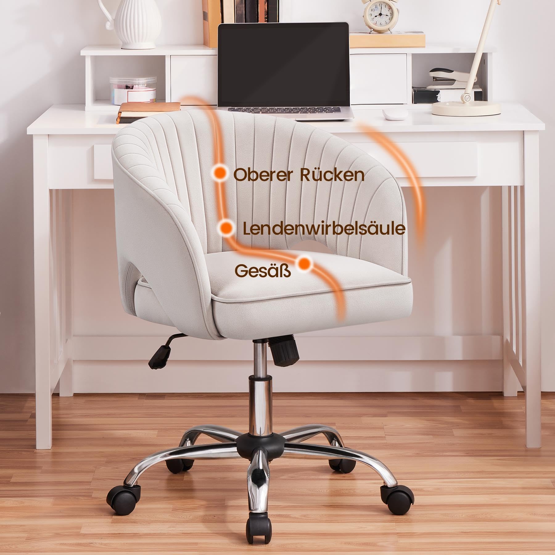 Yaheetech Schreibtischstuhl Drehstuhl Samt - Cremeweiss