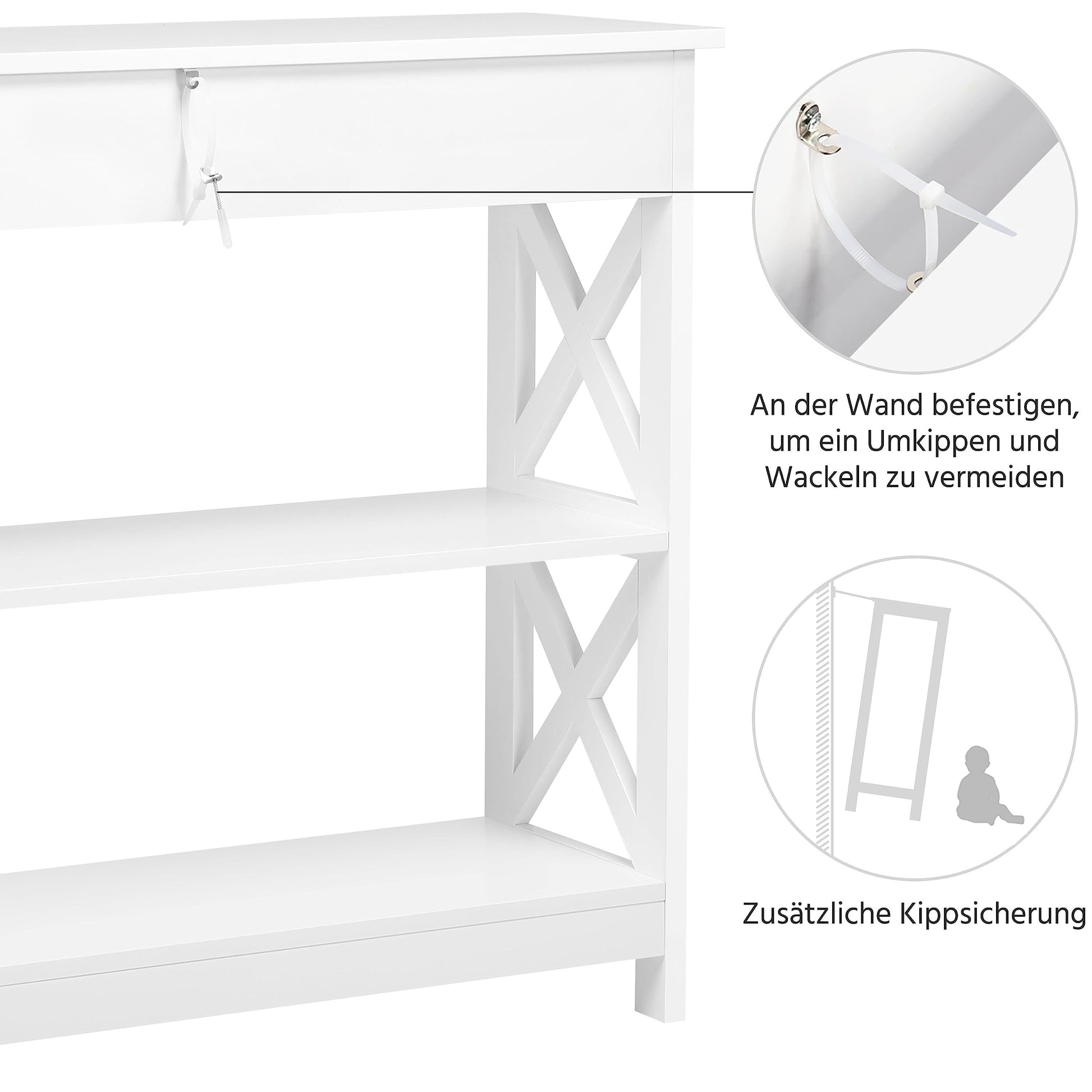 Mit diesem Konsolentisch erhalten Sie ein Möbelstück, das Ästhetik, Stabilität und durchdachten Stauraum perfekt miteinander vereint.