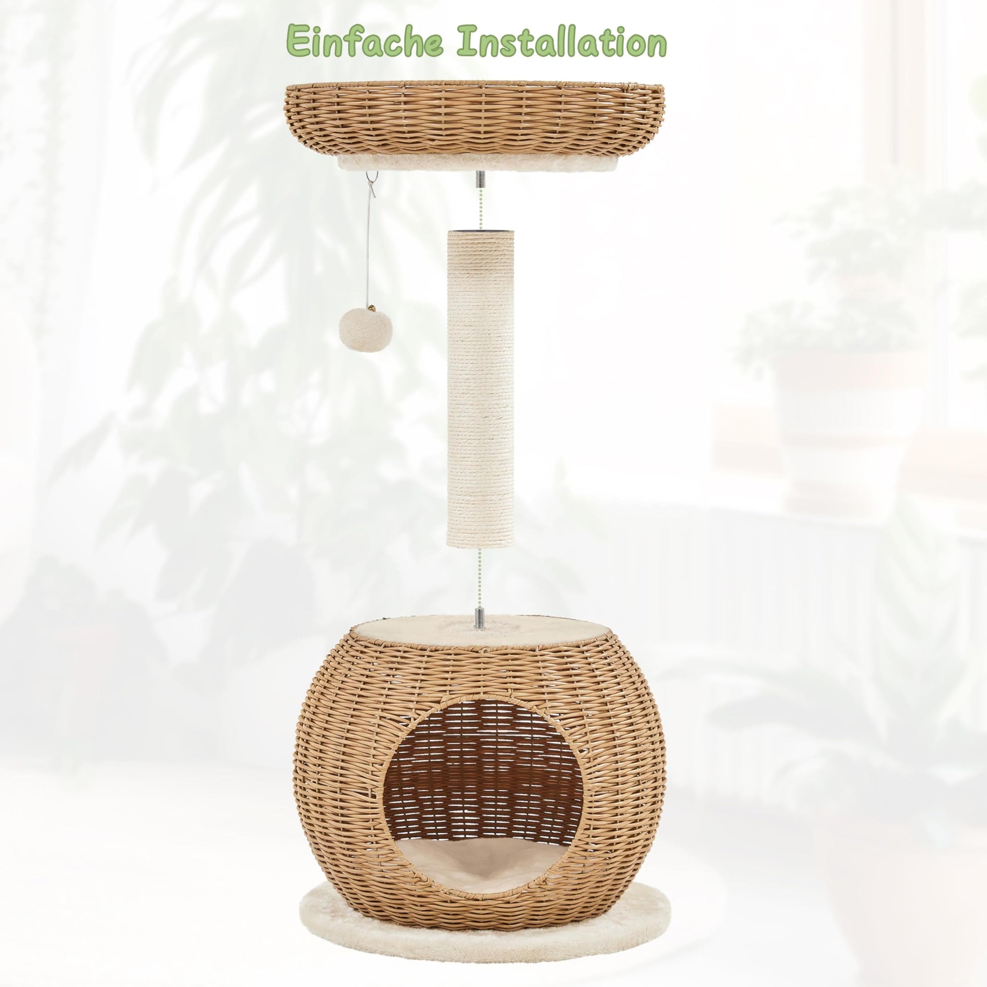 - Umfassende Ausstattung: Verfügt über eine gemütliche Liegemulde, einen animierenden Plüschball, einen widerstandsfähigen Sisal-Kratzstamm und einen kuscheligen Katzenkorb.