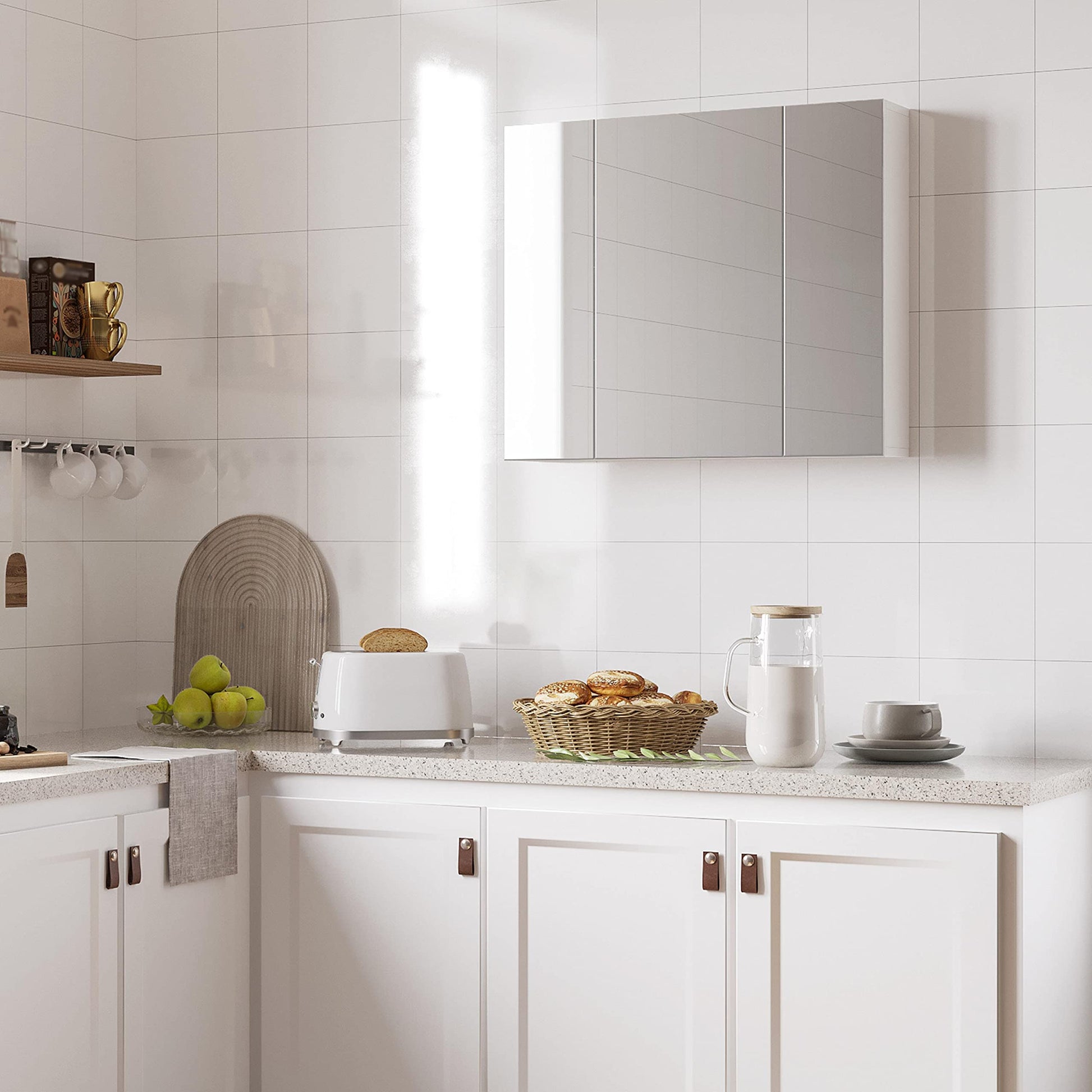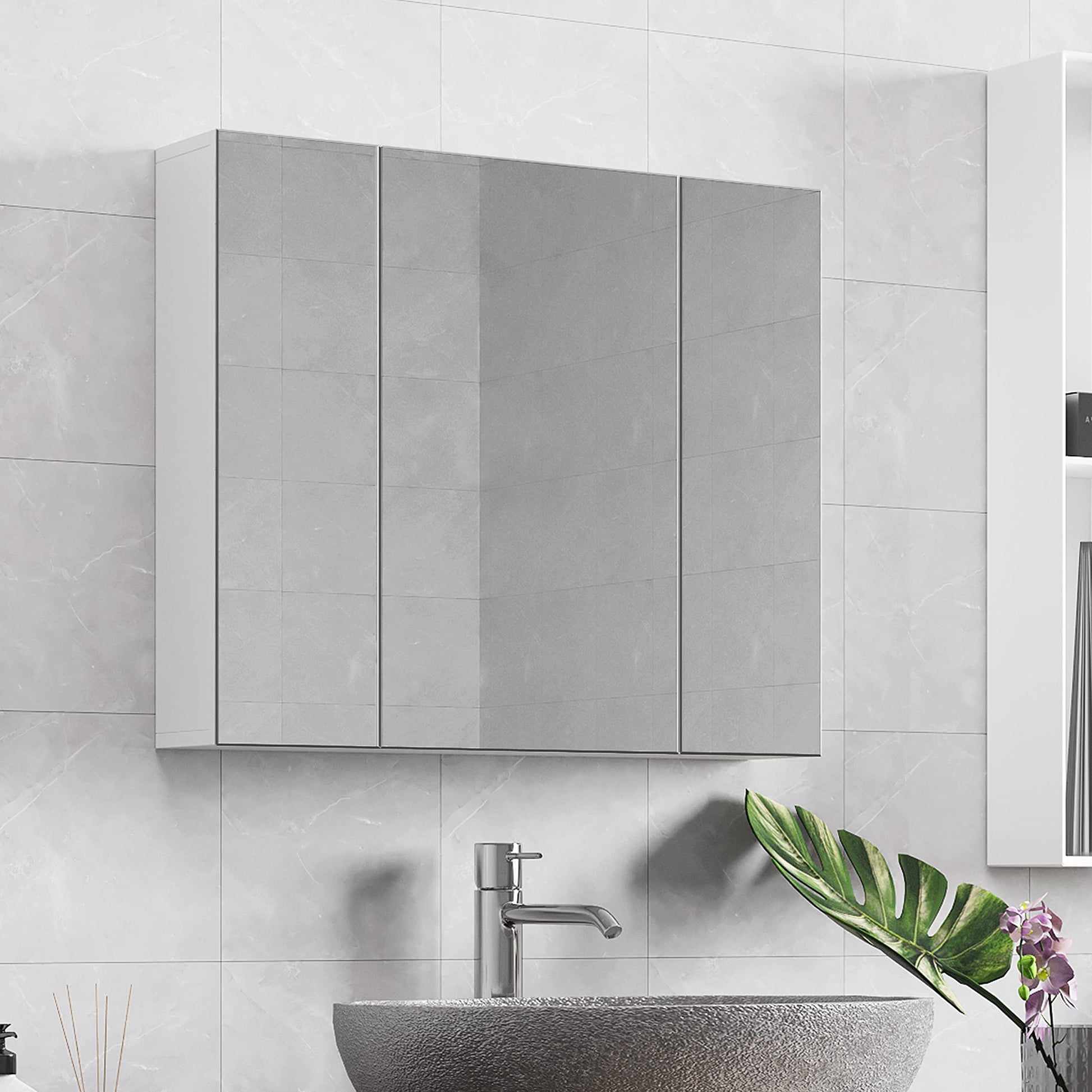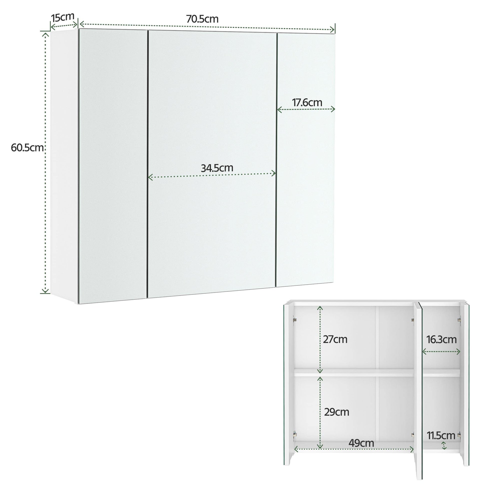 Yaheetech Spiegelschrank Badezimmer 3 Spiegeltüren Weiss 70.5x60.5 cm