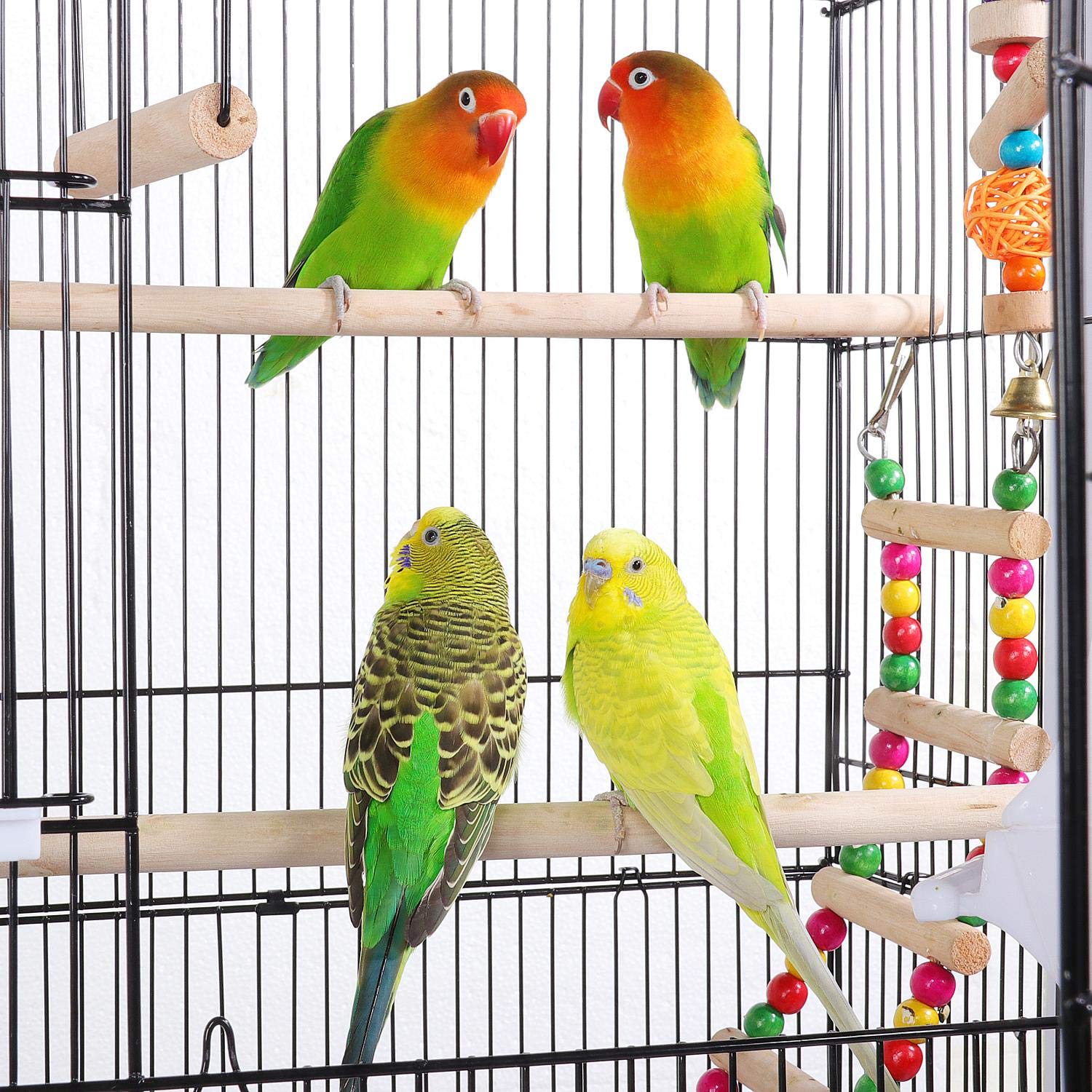 - Integrierter Spielplatz: Ausgestattet mit einer Vogelschaukel, einer Leiter und hängendem Spielzeug, um Ihre Vögel aktiv und unterhalten zu halten.