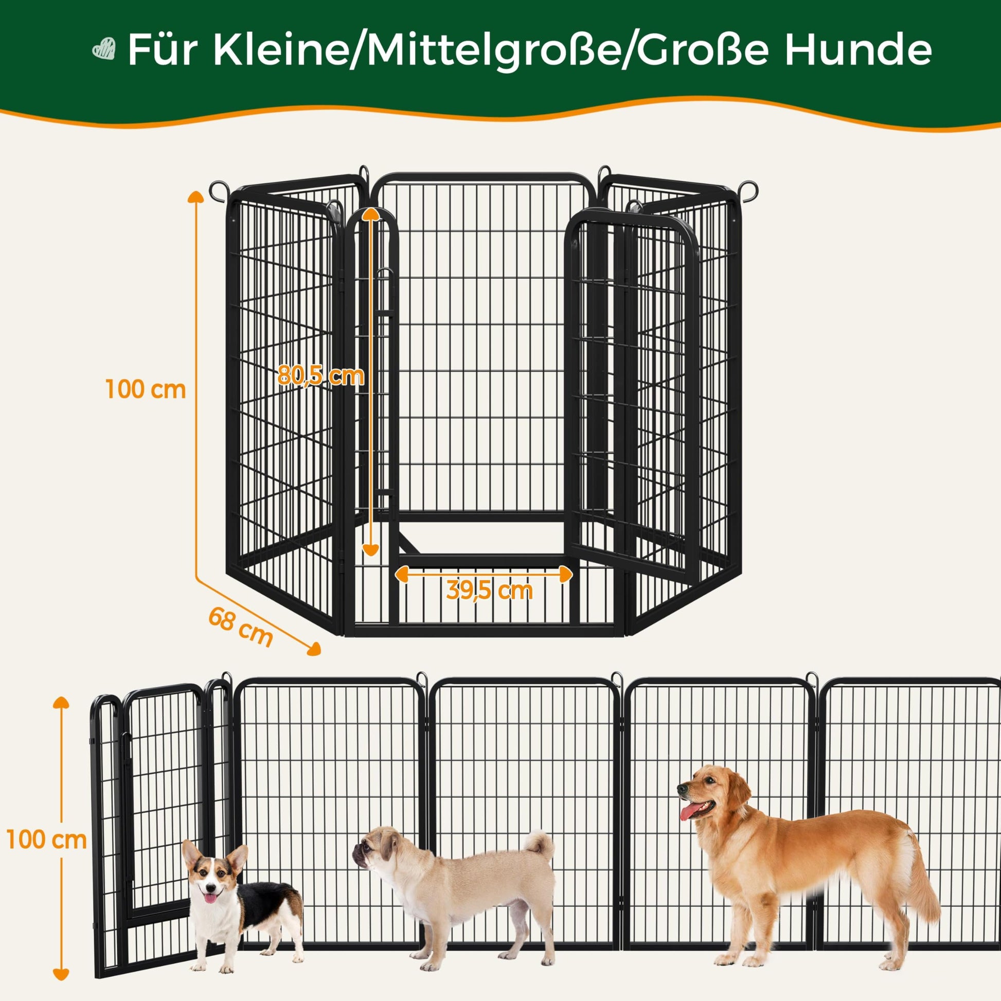 - Vielseitig nutzbar: Mit seiner Höhe von 100 cm eignet sich der Auslauf nicht nur für Welpen, sondern auch perfekt für andere Klein- bis mittelgrosse Haustiere wie Corgis, Kaninchen oder Enten.