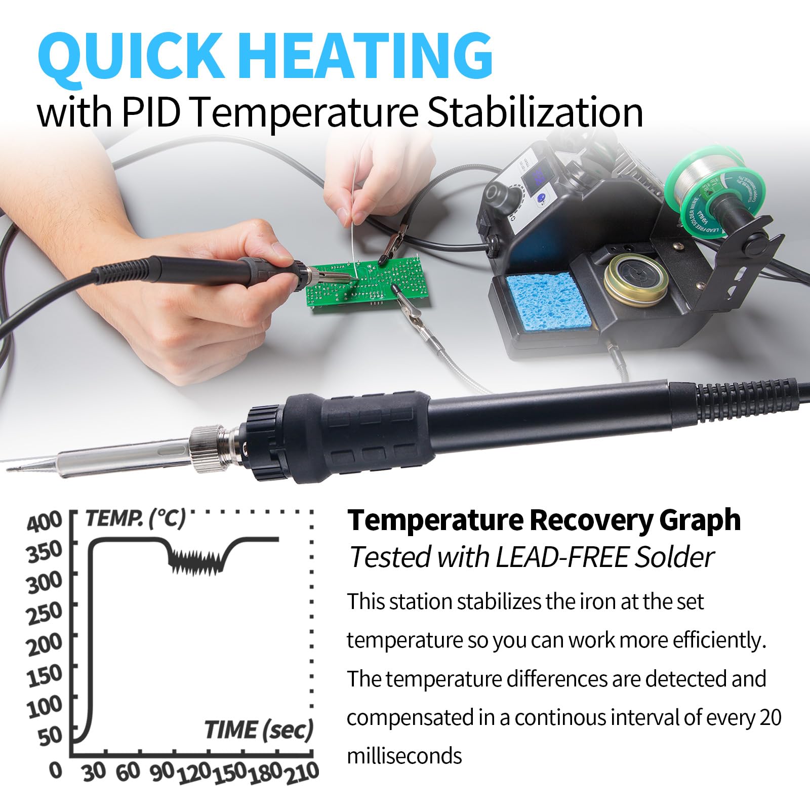 - Leistungsstarker Lötkolben: 60W Keramik-Heizelement für schnelles Aufheizen und einen einstellbaren Temperaturbereich von 90°C bis 480°C.