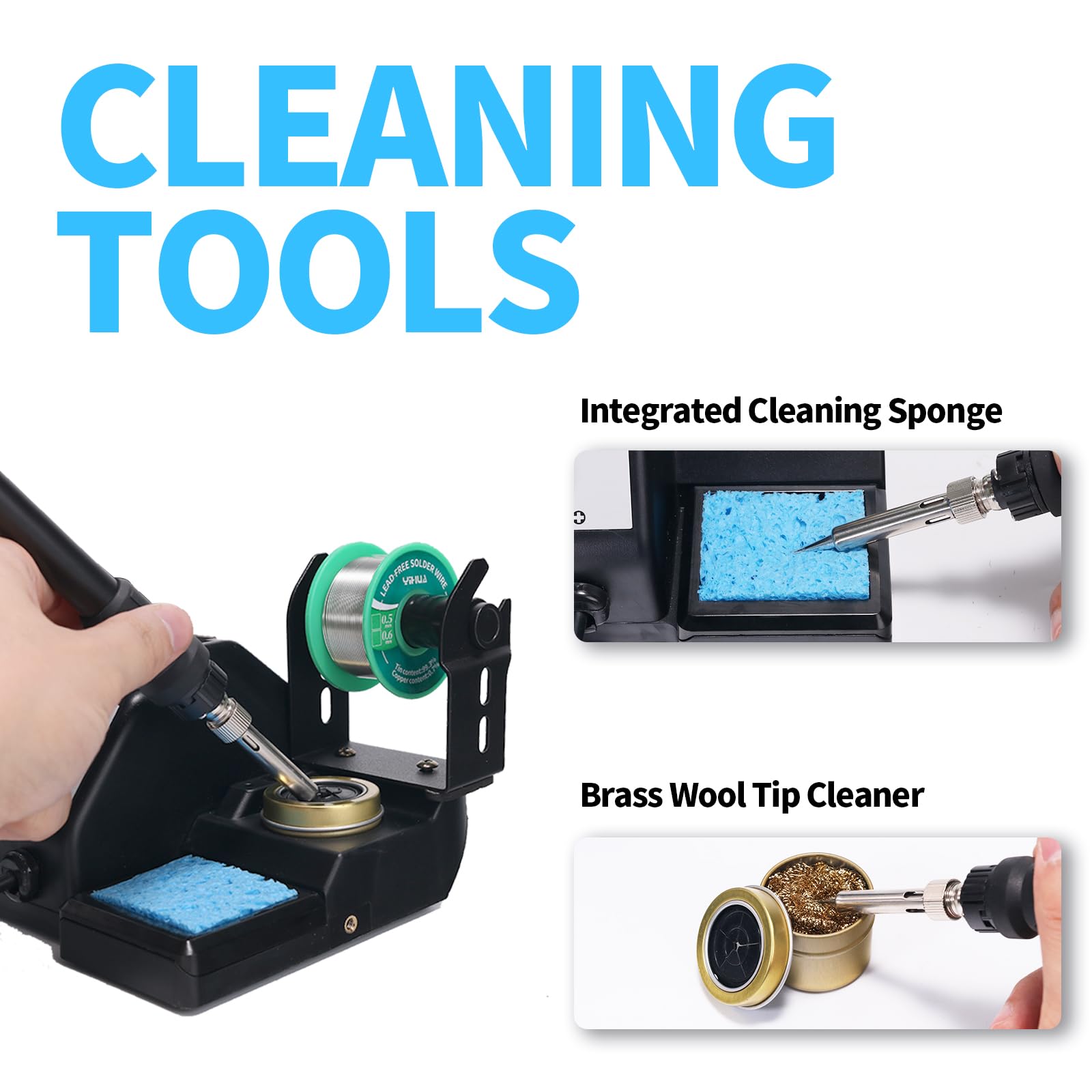 Der intelligente Schlafmodus schont das Material und erhöht die Lebensdauer des Heizelements sowie der Lötspitze, indem er die Temperatur bei Nichtbenutzung automatisch reduziert. Das integrierte Reinigungsset mit spritzsicherem Messingwoll-Behälter und Schwammfach sorgt jederzeit für eine saubere Lötspitze und einen aufgeräumten Arbeitsbereich.