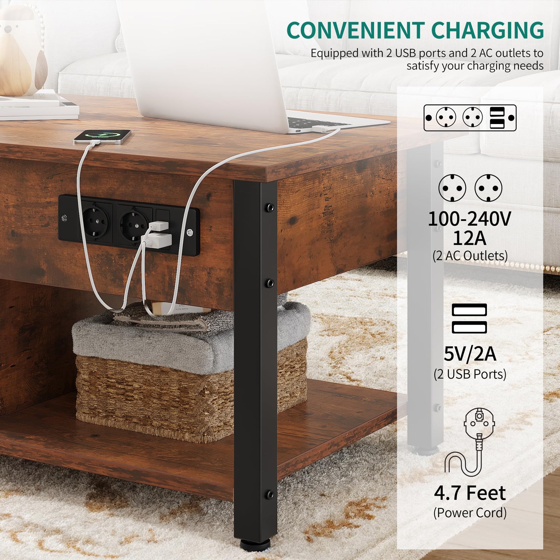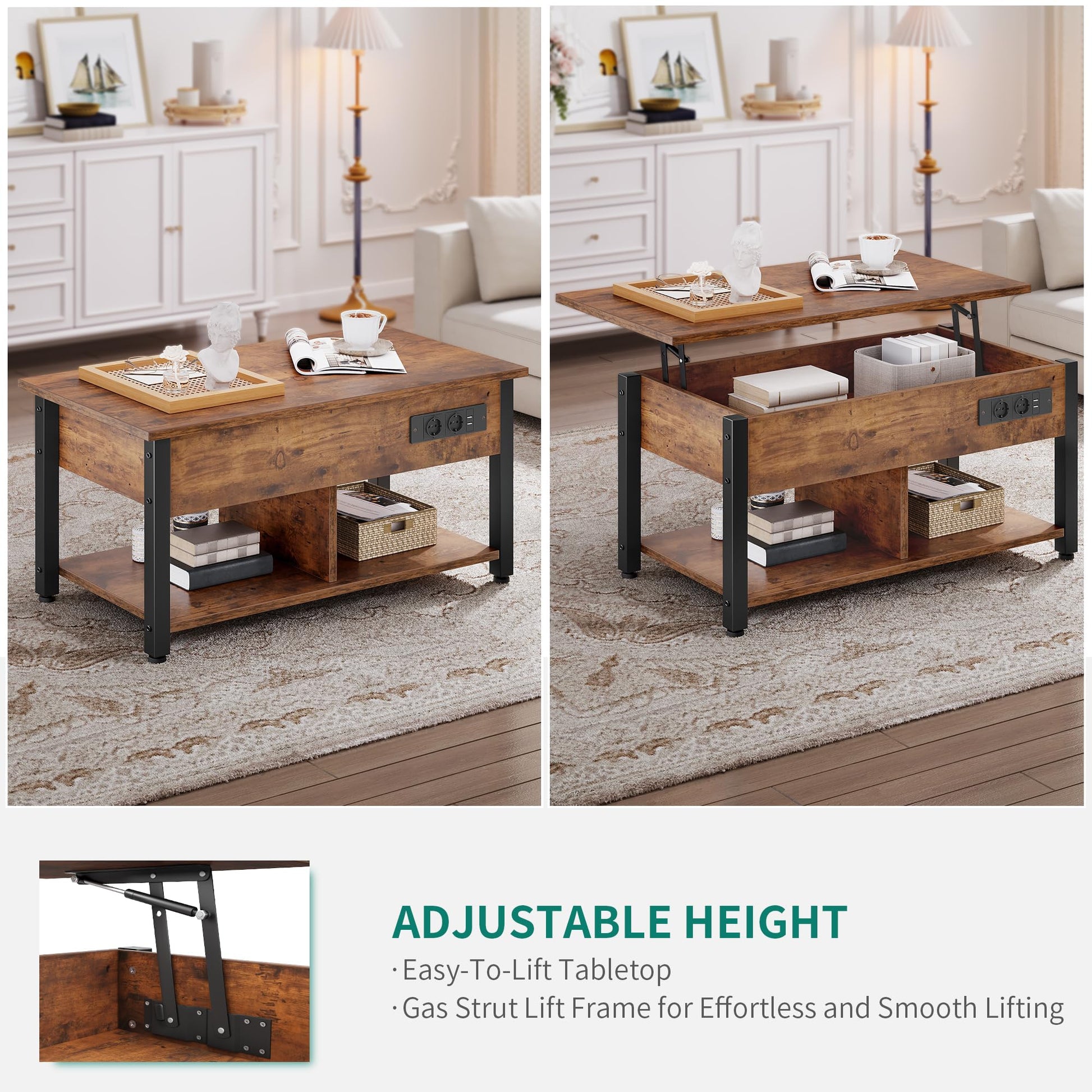 YITAHOME Anhebbarer Couchtisch LED Stauraum Vintage-Braun