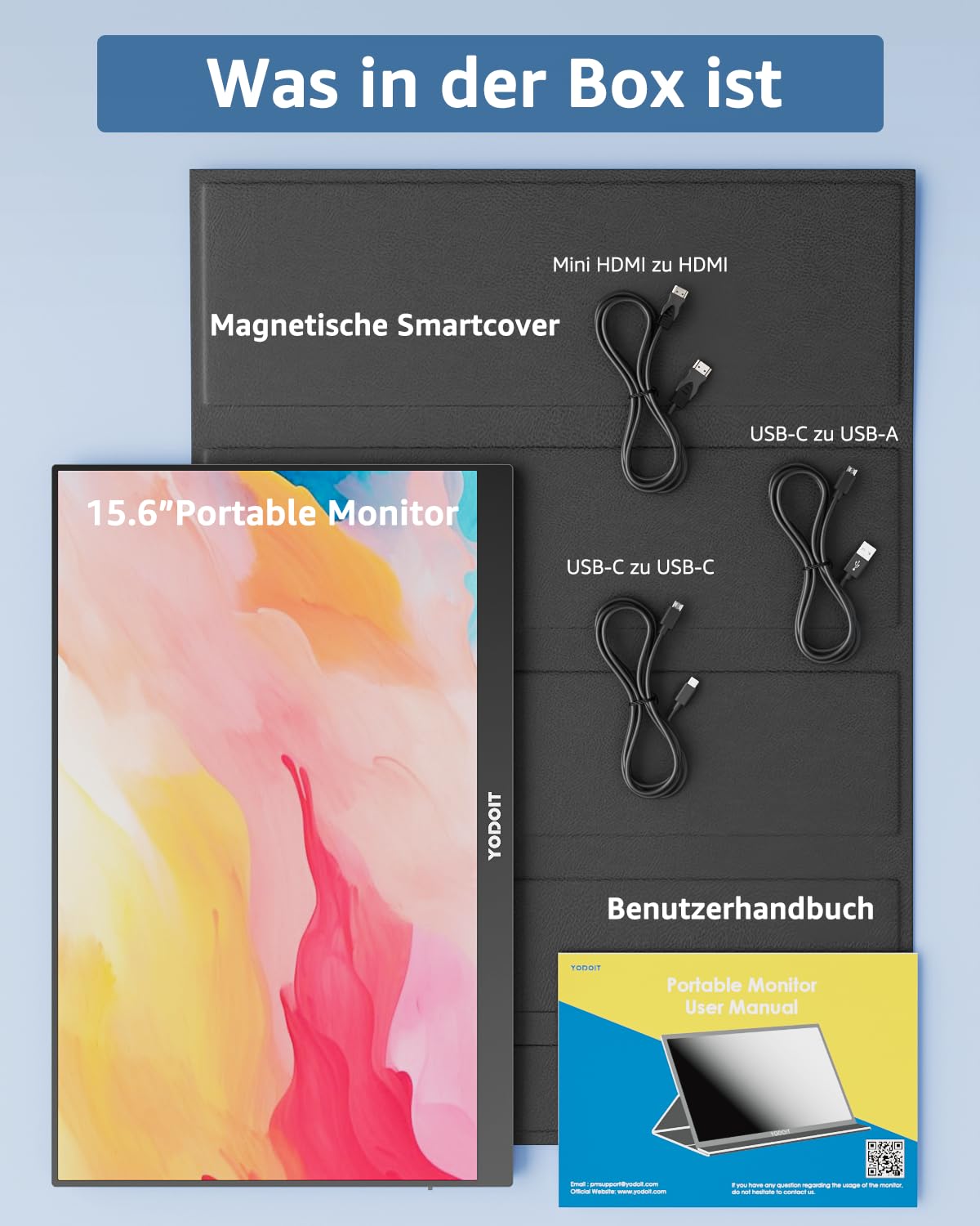 Yodoit Tragbarer Monitor – 15.6 Zoll FHD IPS USB-C HDMI