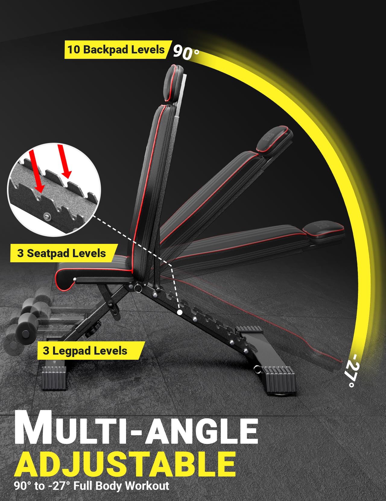 Diese Trainingsbank passt sich flexibel an Ihre Bedürfnisse und Ihr Fitnesslevel an. Mit 16 verschiedenen Einstellungsoptionen, einschliesslich einer senkrechten 90-Grad-Position für Schulterdrücken, können Sie über 60 verschiedene Übungen durchführen. Nach dem Training ist die Bank blitzschnell zusammengeklappt und kann dank ihres geringen Gewichts und der kompakten Masse platzsparend verstaut werden – ideal für das Fitnessstudio zu Hause.