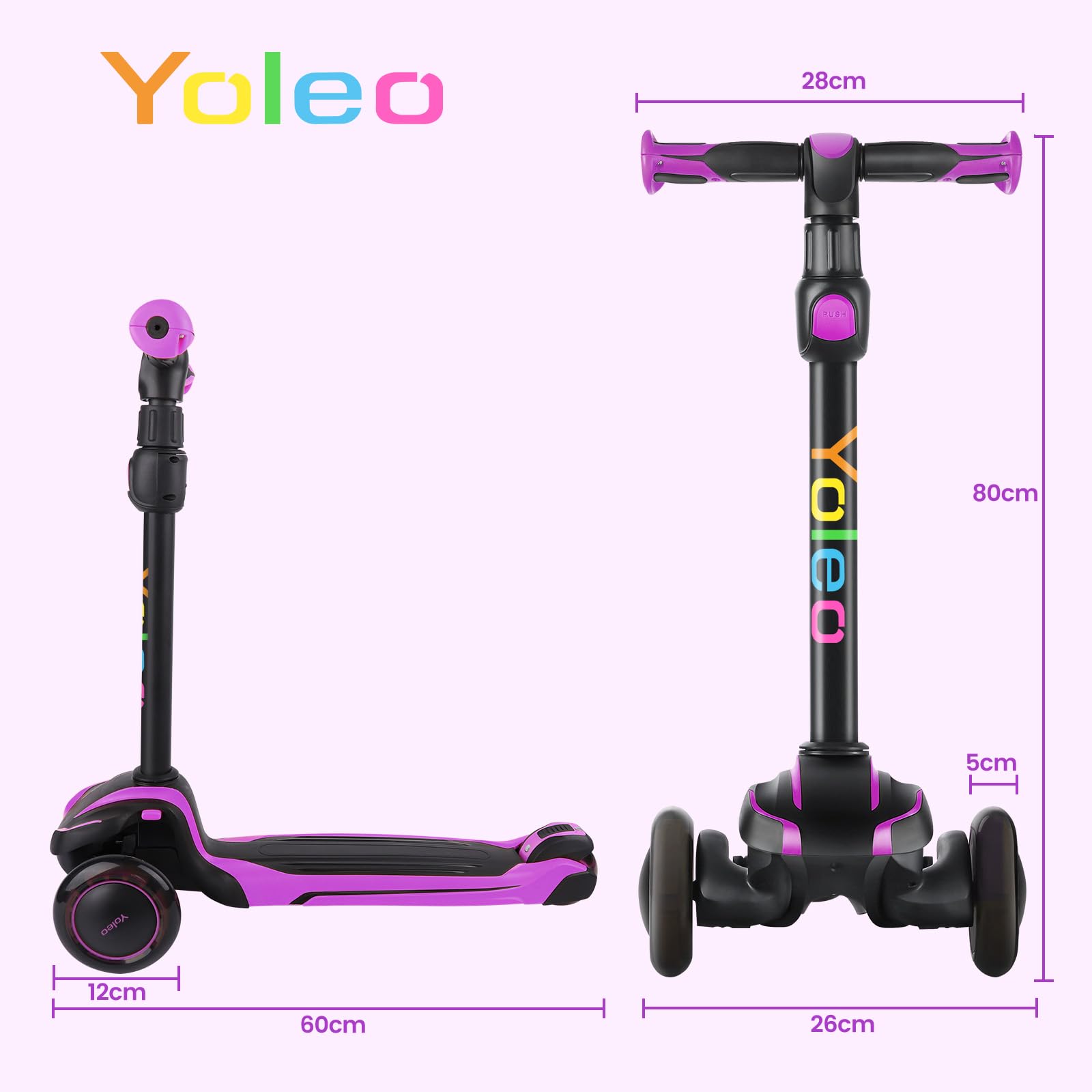YOLEO Kinderroller Leuchträder 3-12 Jahre verstellbar - Violett