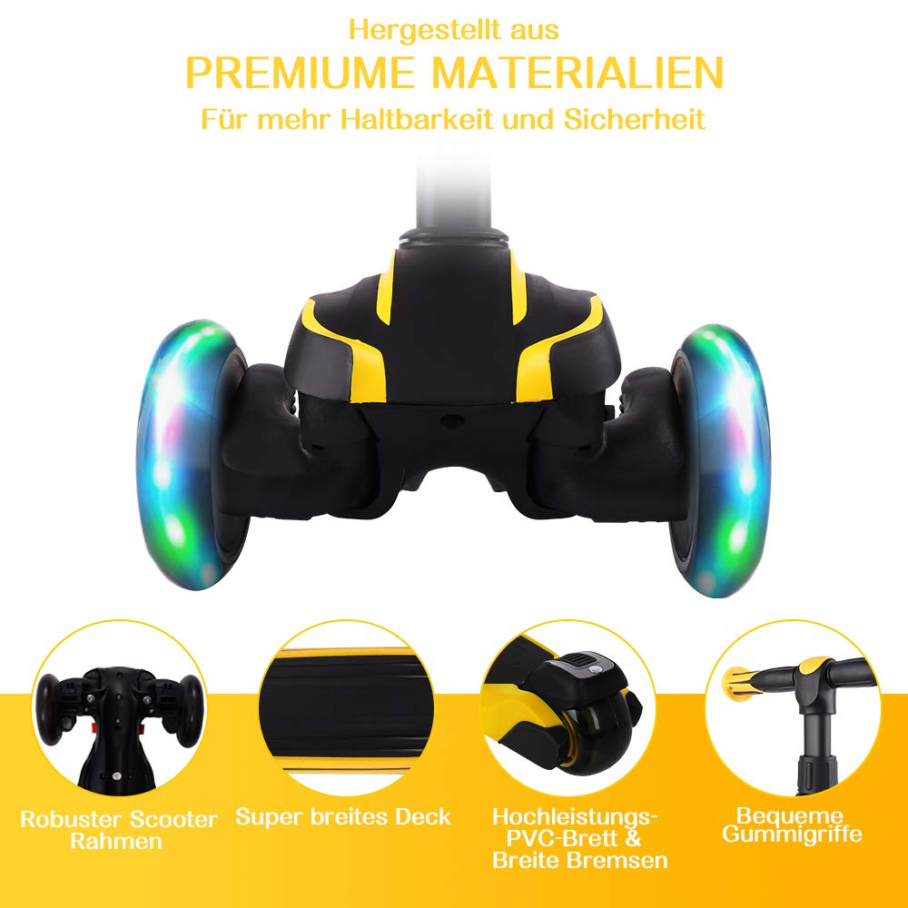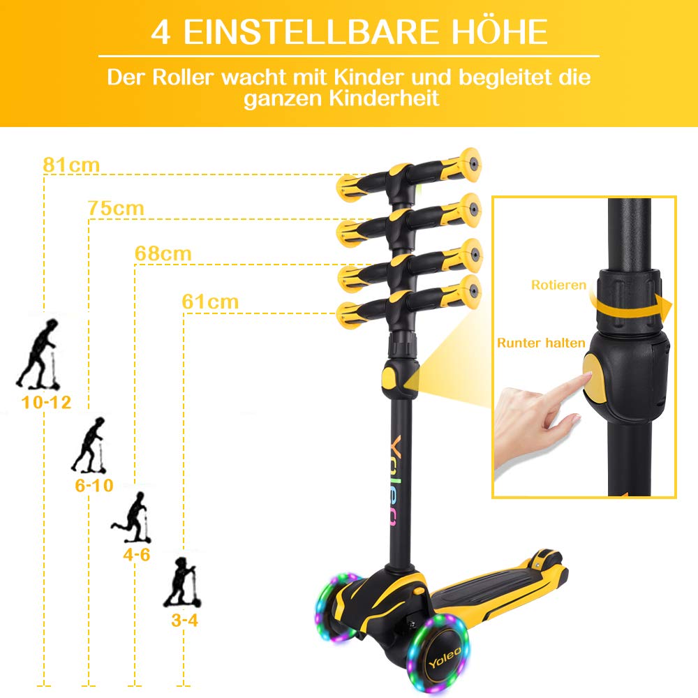 Yoleo Kinderscooter Dreirad Leuchtrollen höhenverstellbar - Gelb