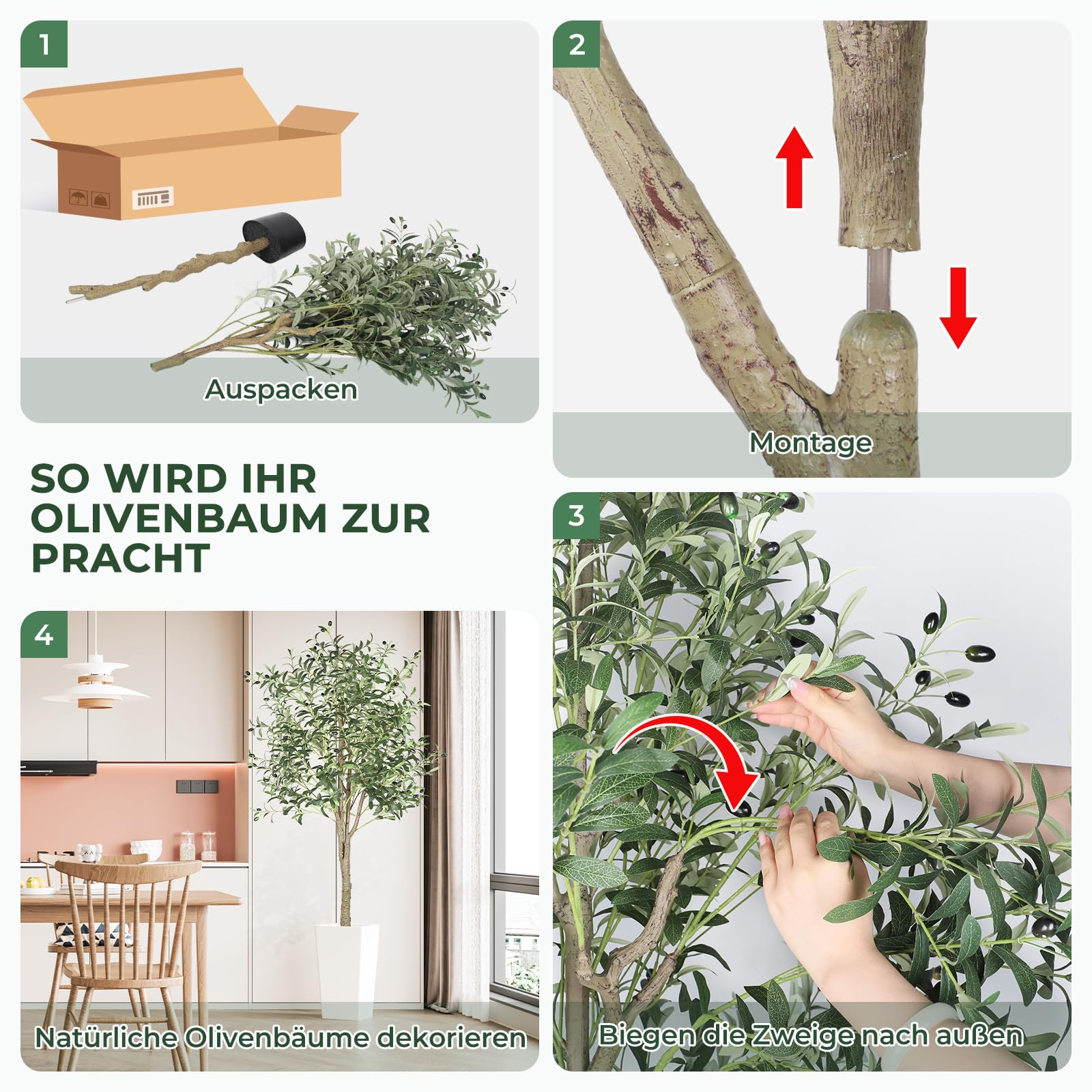 YOLEO Künstlicher Olivenbaum gross Kunstpflanze - 180cm Typ 2