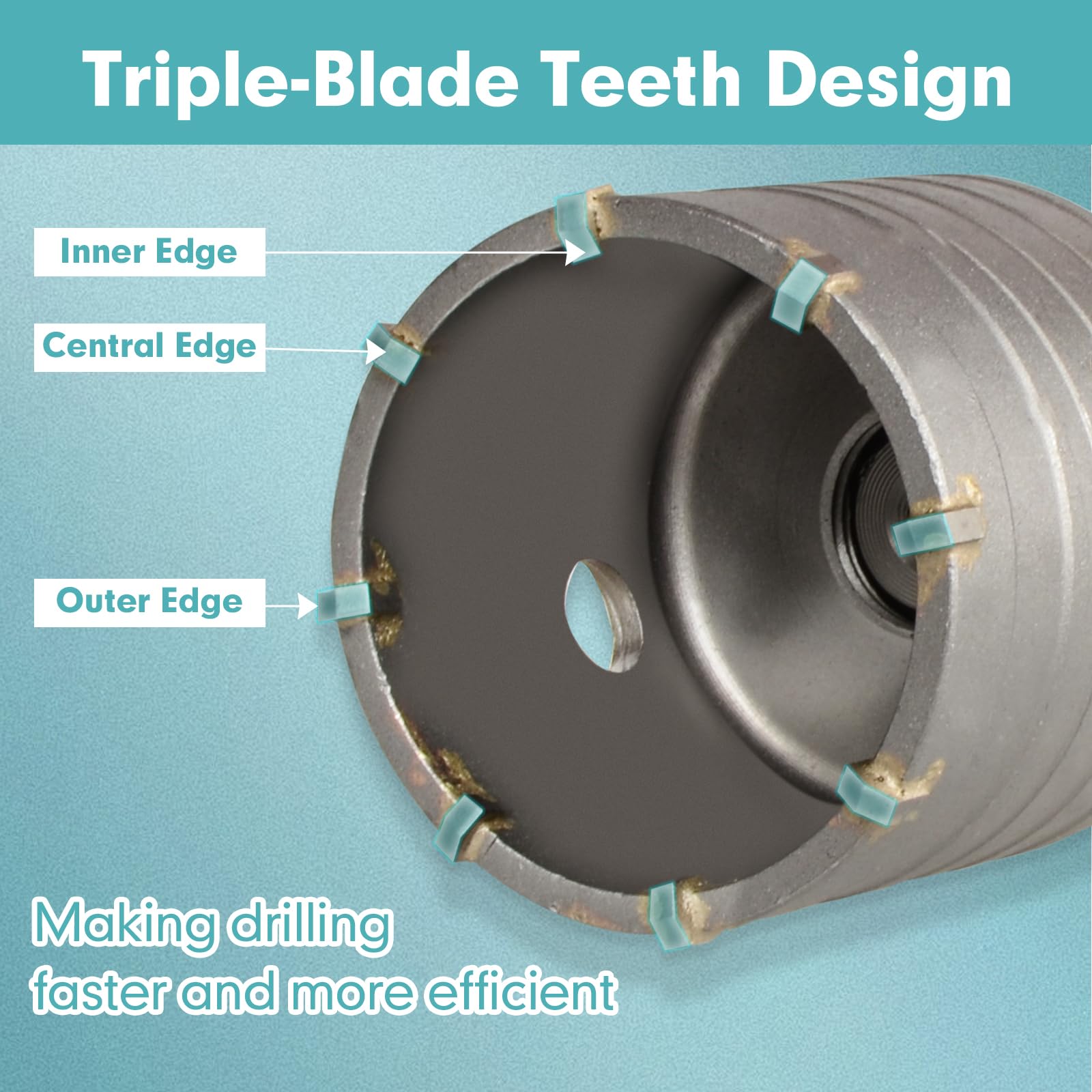 Die hochwertige Materialkombination verleiht den Bohrkronen eine aussergewöhnliche Härte sowie eine hohe Verschleiss- und Schlagfestigkeit. Selbst bei intensiver Nutzung bleiben die Schneiden scharf, was den Abrieb minimiert und eine konstant hohe Leistung bei schweren Arbeiten sicherstellt.