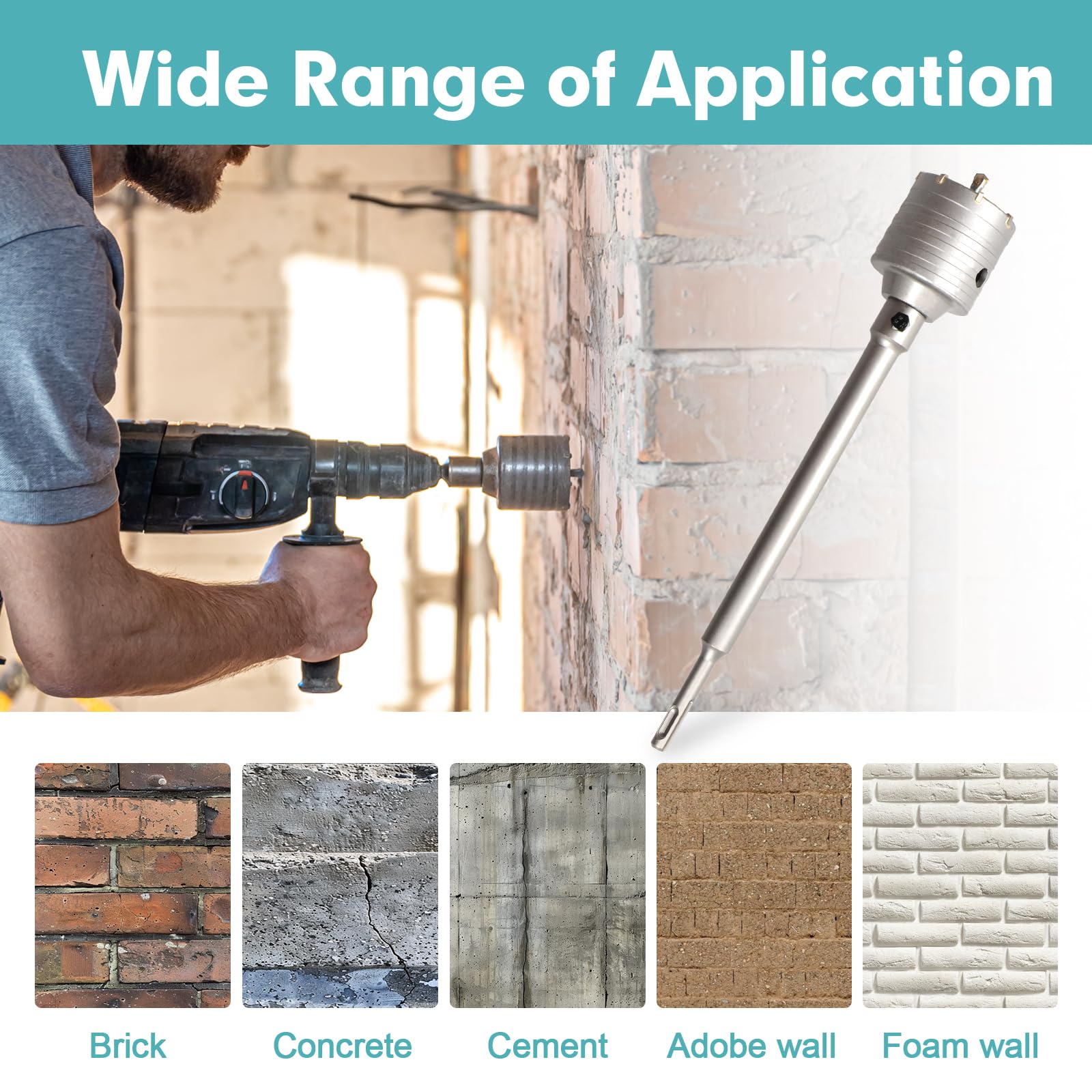 Dieses Set eignet sich hervorragend für Durchbrüche in Wänden und Decken, das Verlegen von Rohren, die Installation von Klimaanlagen oder die Montage von Abluftleitungen.