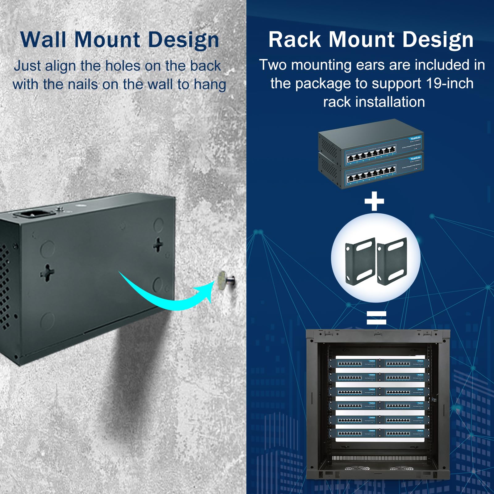 Einfachste Inbetriebnahme: Dank der Plug-and-Play-Funktionalität ist keine Konfiguration nötig. Schliessen Sie einfach das Netzwerkkabel an, und der Switch ist sofort einsatzbereit. Das stabile Metallgehäuse und die mitgelieferten Montagewinkel ermöglichen eine flexible Installation in jeder Umgebung.