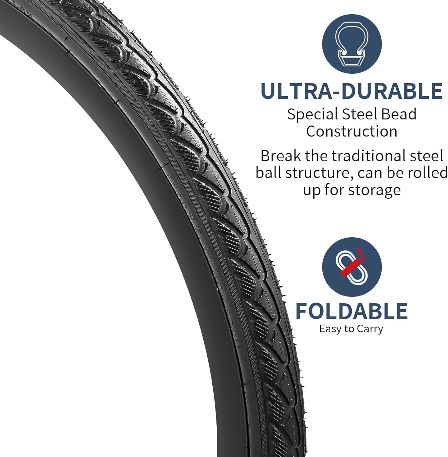 - Faltbare Konstruktion: Die Reifen lassen sich leicht und kompakt zusammenfalten, was sie ideal für den Transport als Ersatzreifen auf längeren Touren macht.
