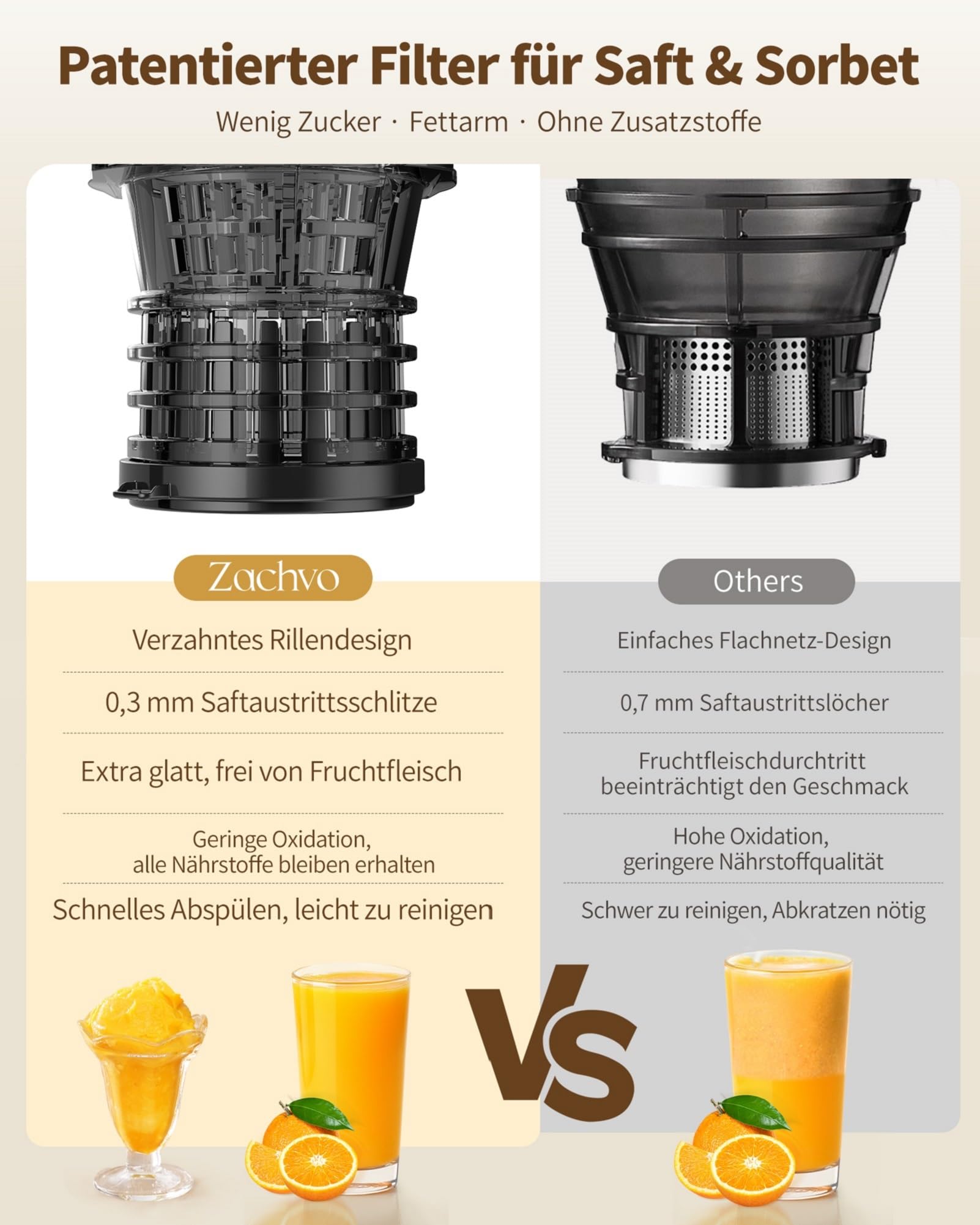 ZACHVO Kaltpress Slow Juicer Entsafter – 130mm Einfüllschacht
