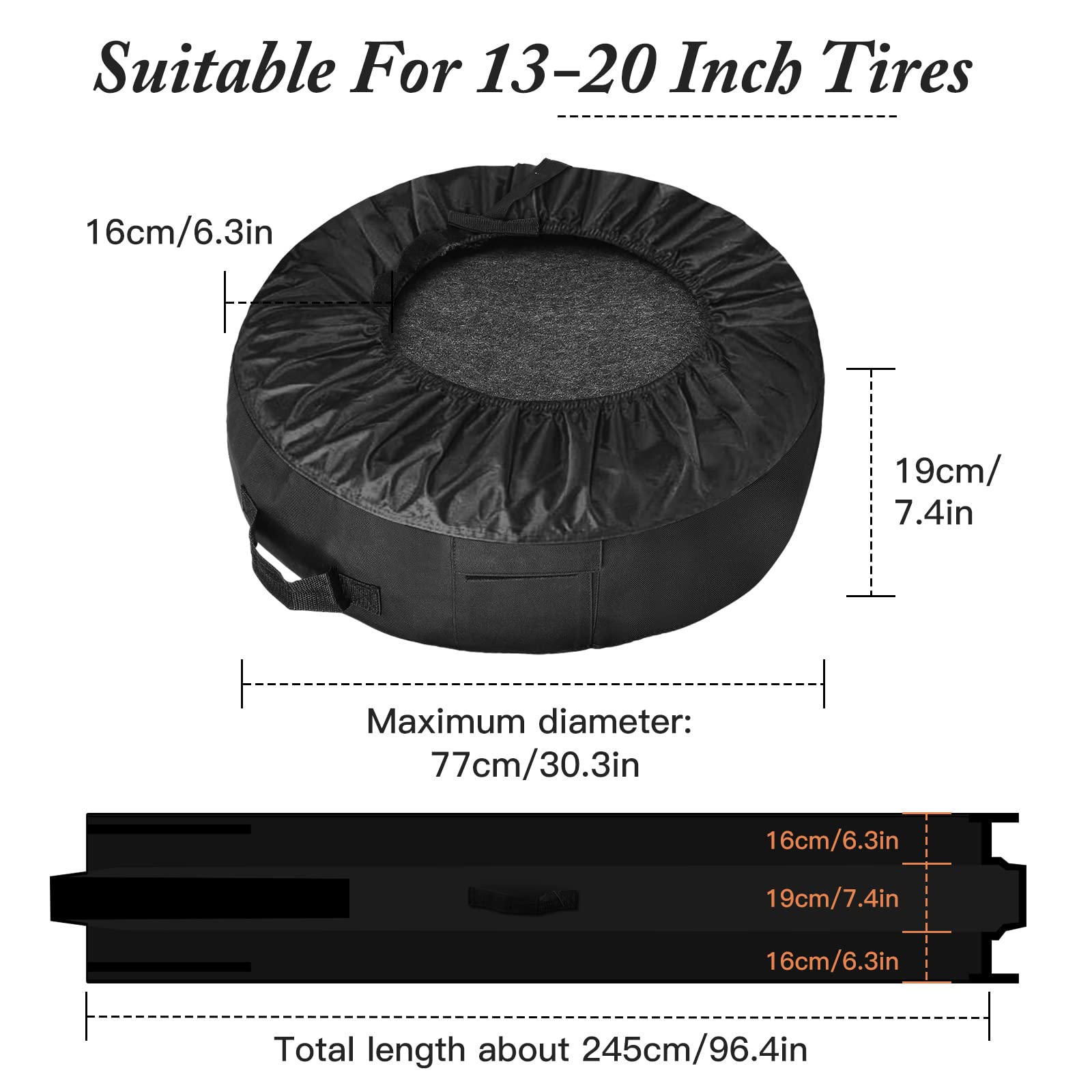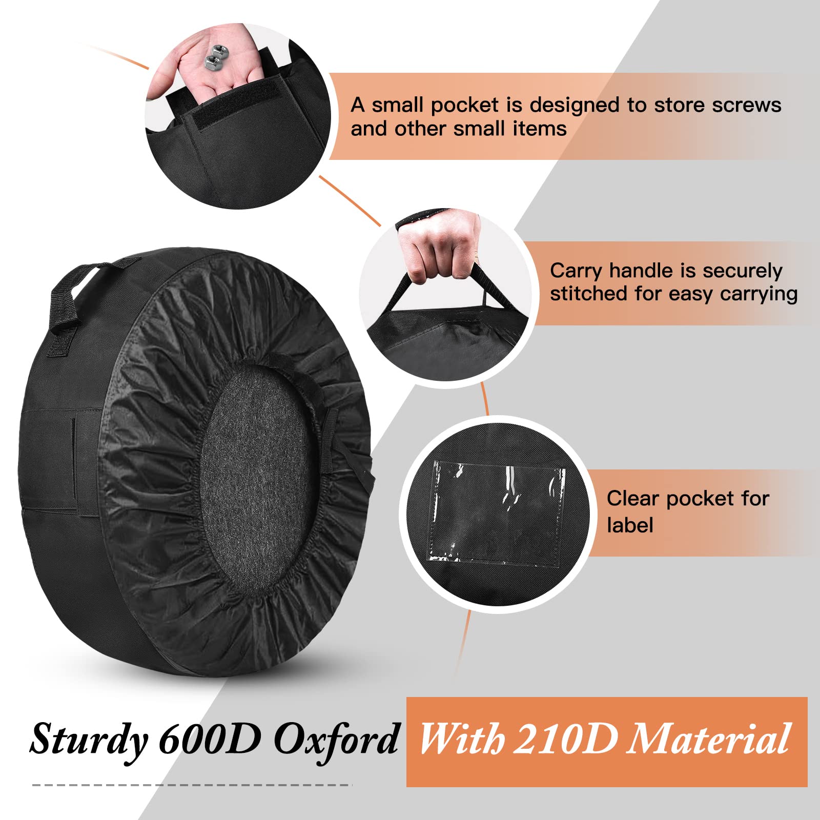 - Hochwertiges Material: Gefertigt aus strapazierfähigem und langlebigem 600D & 210D Oxford-Gewebe, das Ihre Reifen zuverlässig schützt und ihre Lebensdauer verlängert.