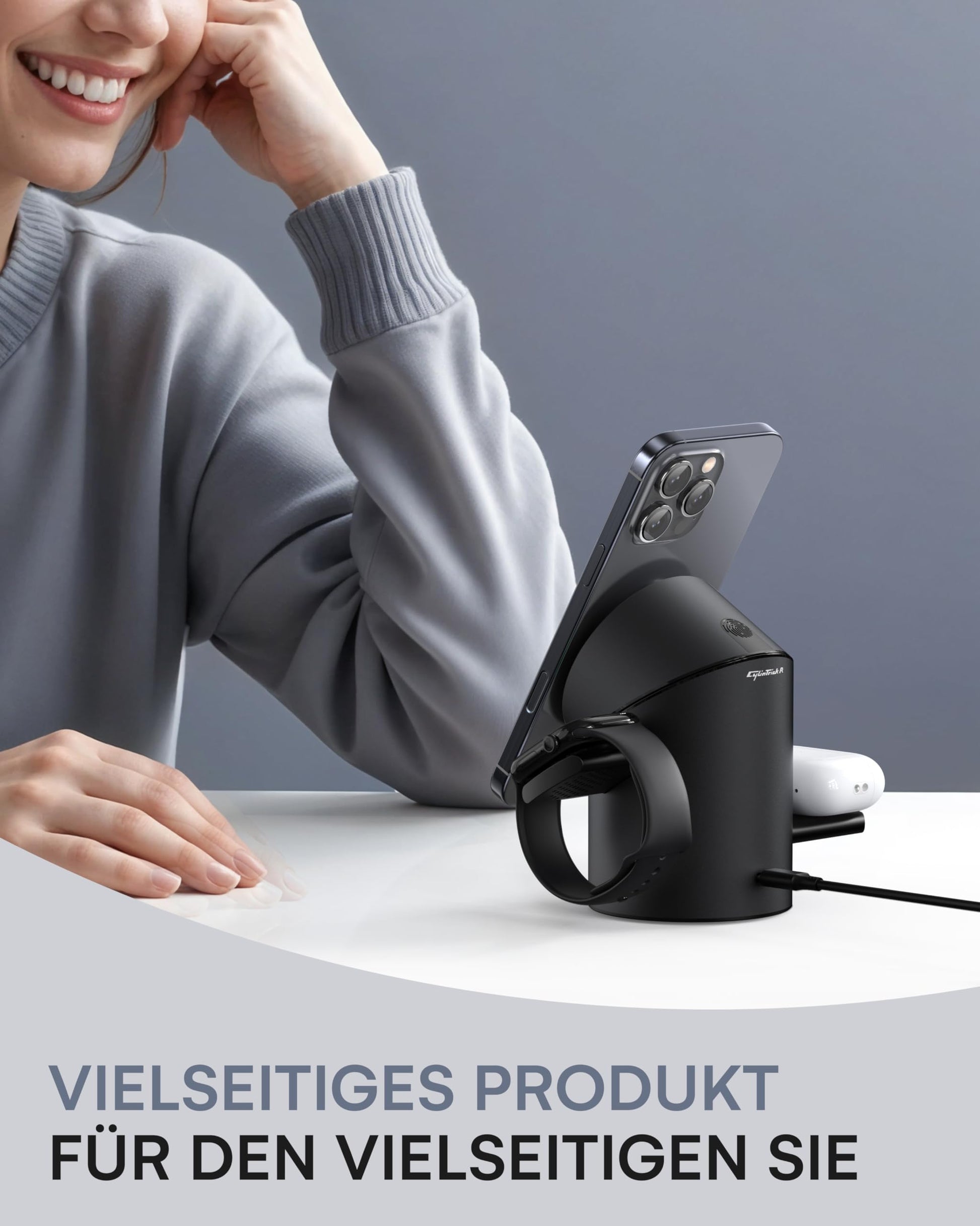 - All-in-One für Apple: Laden Sie alle Ihre wichtigen Apple-Geräte – iPhone, Apple Watch und AirPods – simultan an einem einzigen Ort. Die perfekte Lösung, um Kabelsalat zu vermeiden.