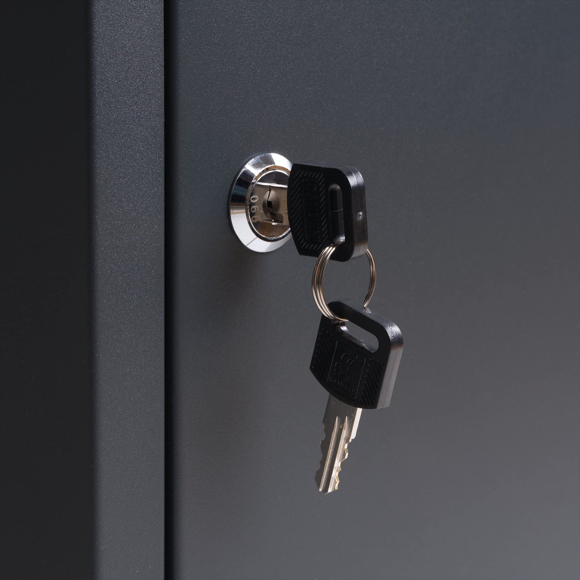 Die Sicherheit wird durch zwei Merkmale gewährleistet: Eine integrierte Rückholsperre verhindert, dass nach dem Einwurf von aussen in das Fach gegriffen werden kann. Zudem ist die Entnahmetür mit einem Zylinderschloss gesichert, zu dem nur Sie die Schlüssel haben.