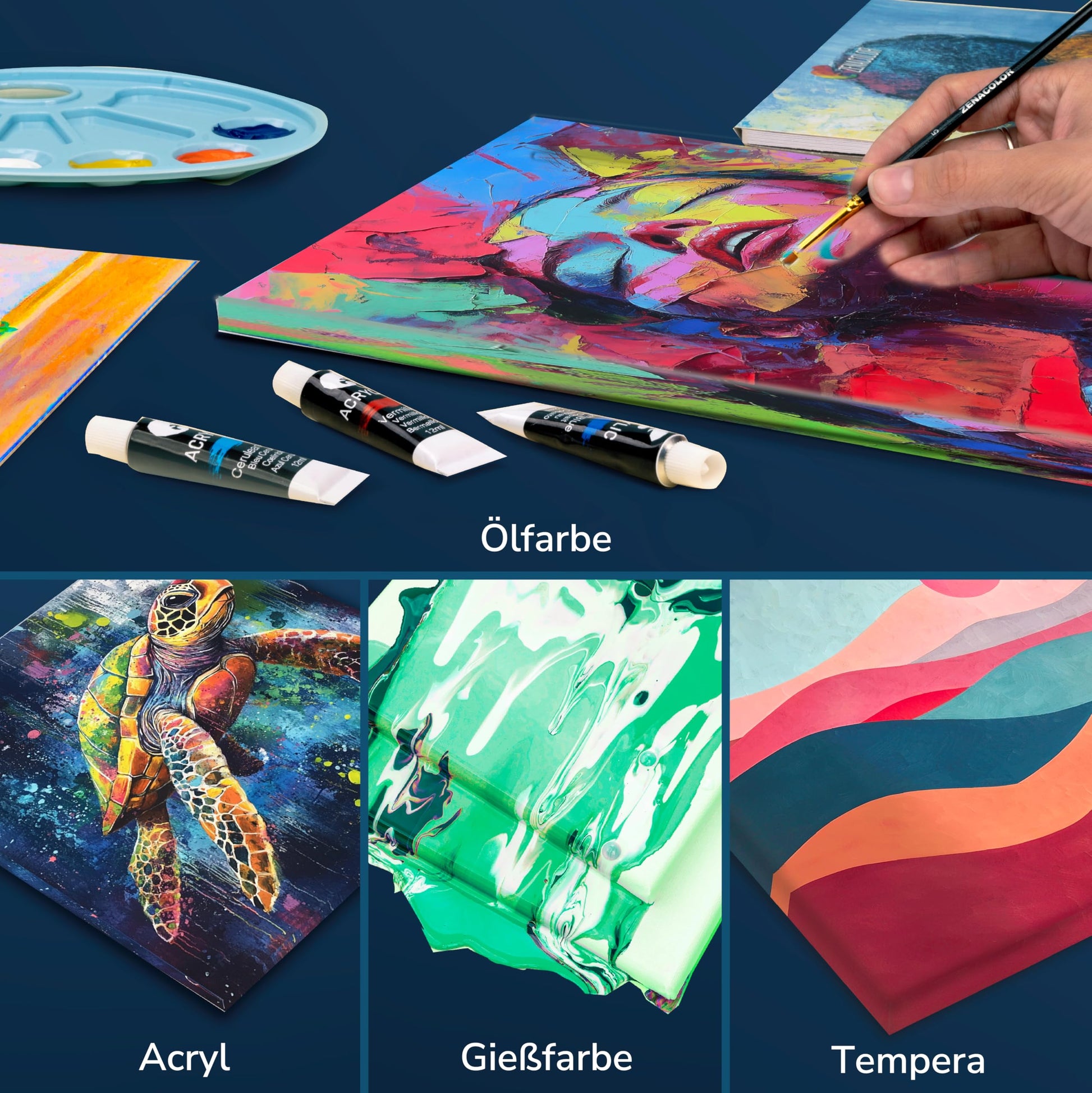 Ja, dieses Set ist perfekt für Künstler aller Niveaus. Anfänger profitieren von den sofort einsatzbereiten, hochwertigen Leinwänden, während erfahrene Künstler die Zuverlässigkeit für grossformatige oder mehrere Projekte gleichzeitig schätzen.