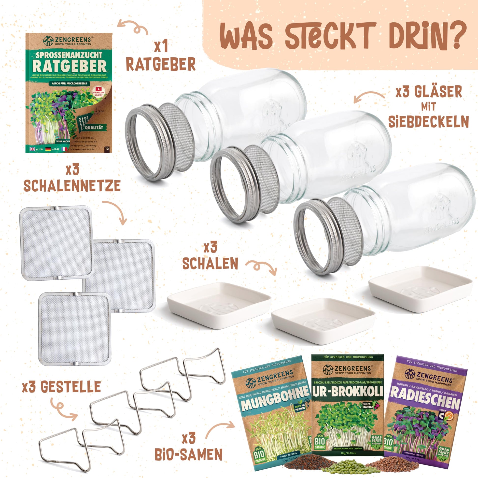 Was ist im zengreens® Sprossen-Anzuchtset alles enthalten?