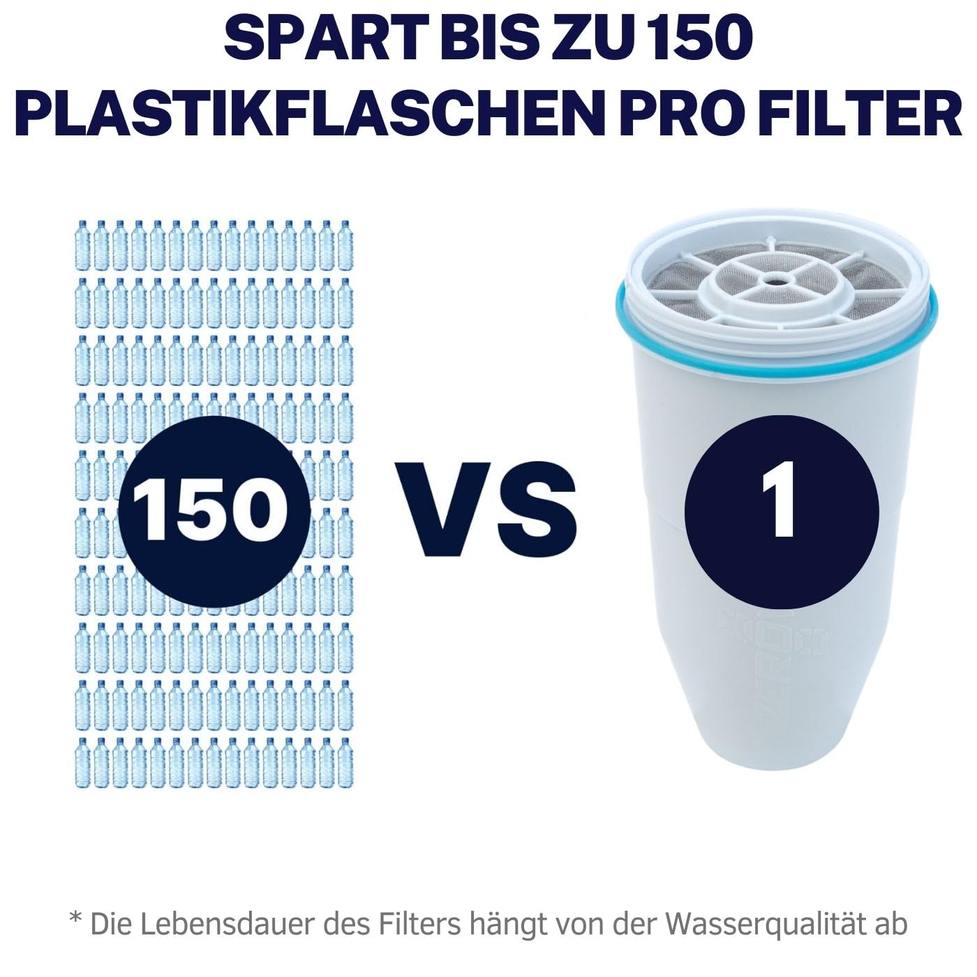 Leisten Sie einen aktiven Beitrag zum Umweltschutz. Mit nur einem einzigen Filter sparen Sie bis zu 150 Einweg-Plastikflaschen ein. Dieses 4er-Pack ersetzt somit bis zu 600 Flaschen und hilft Ihnen, Plastikmüll zu reduzieren, ohne auf reinstes Trinkwasser verzichten zu müssen.