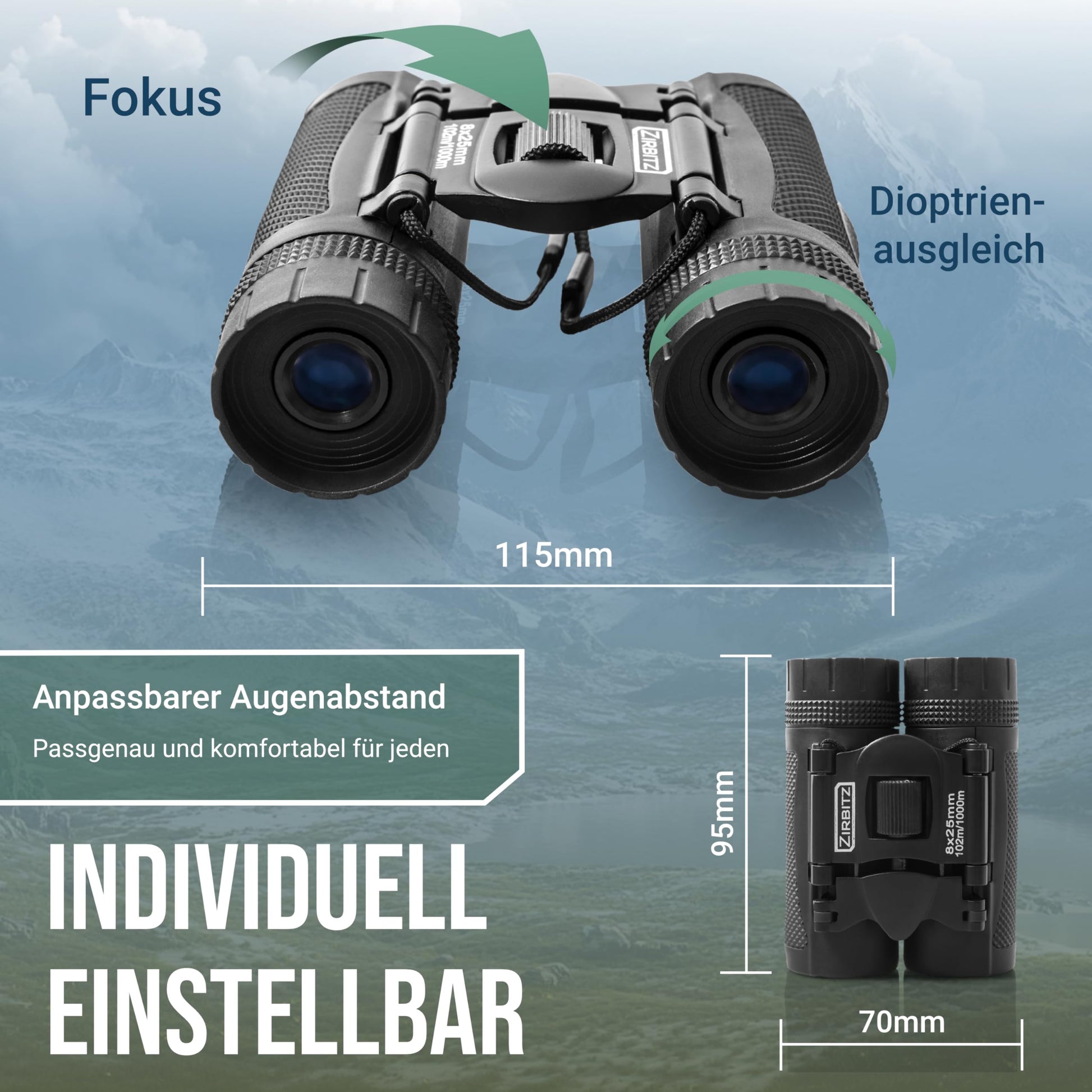 ZIRBITZ® HD Fernglas 8x25 – kompaktes Taschenfernglas