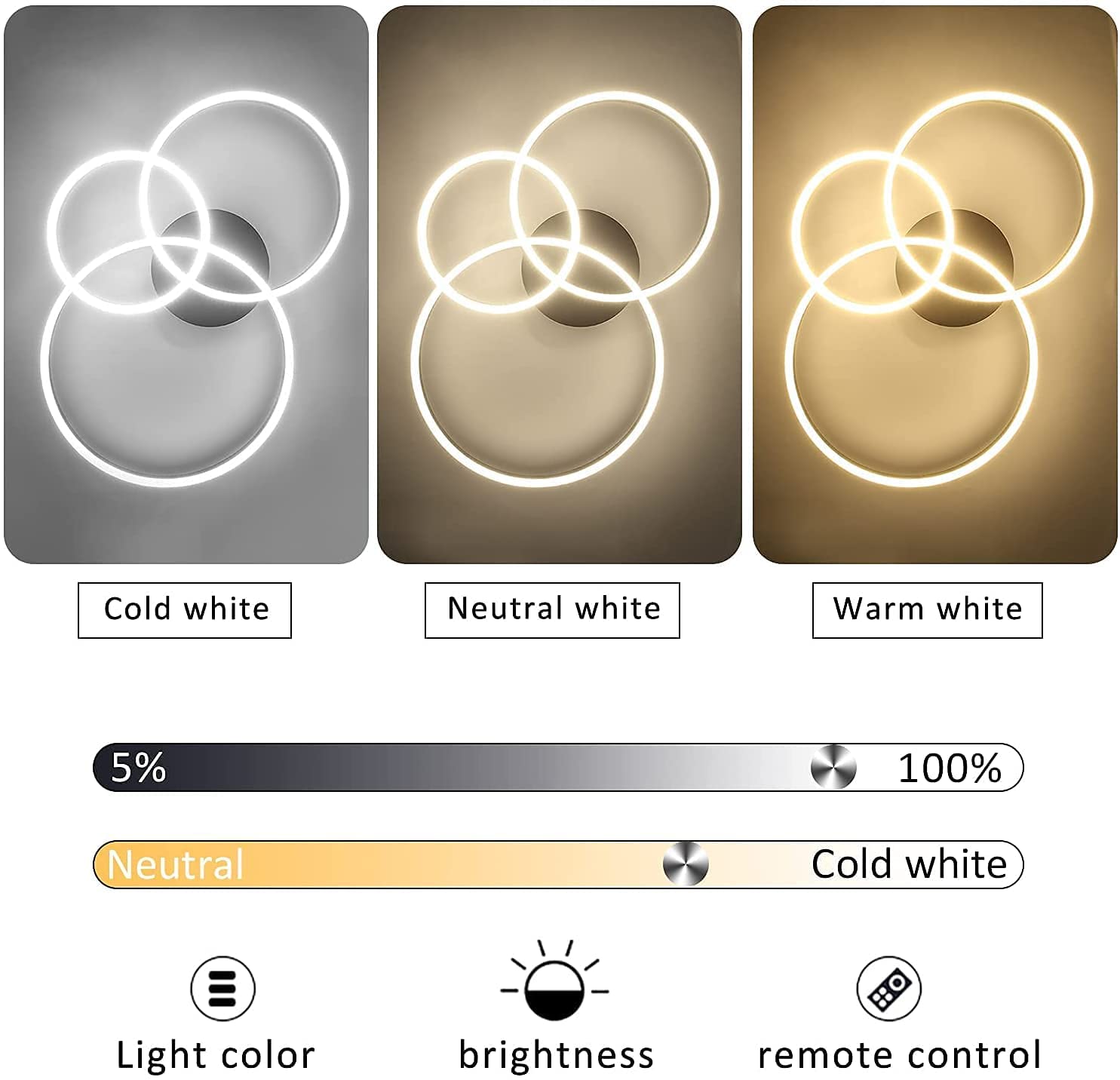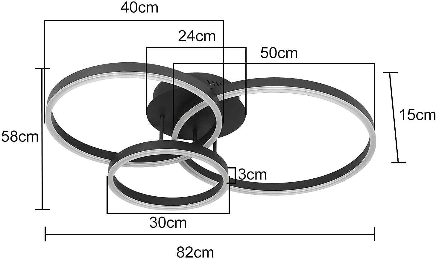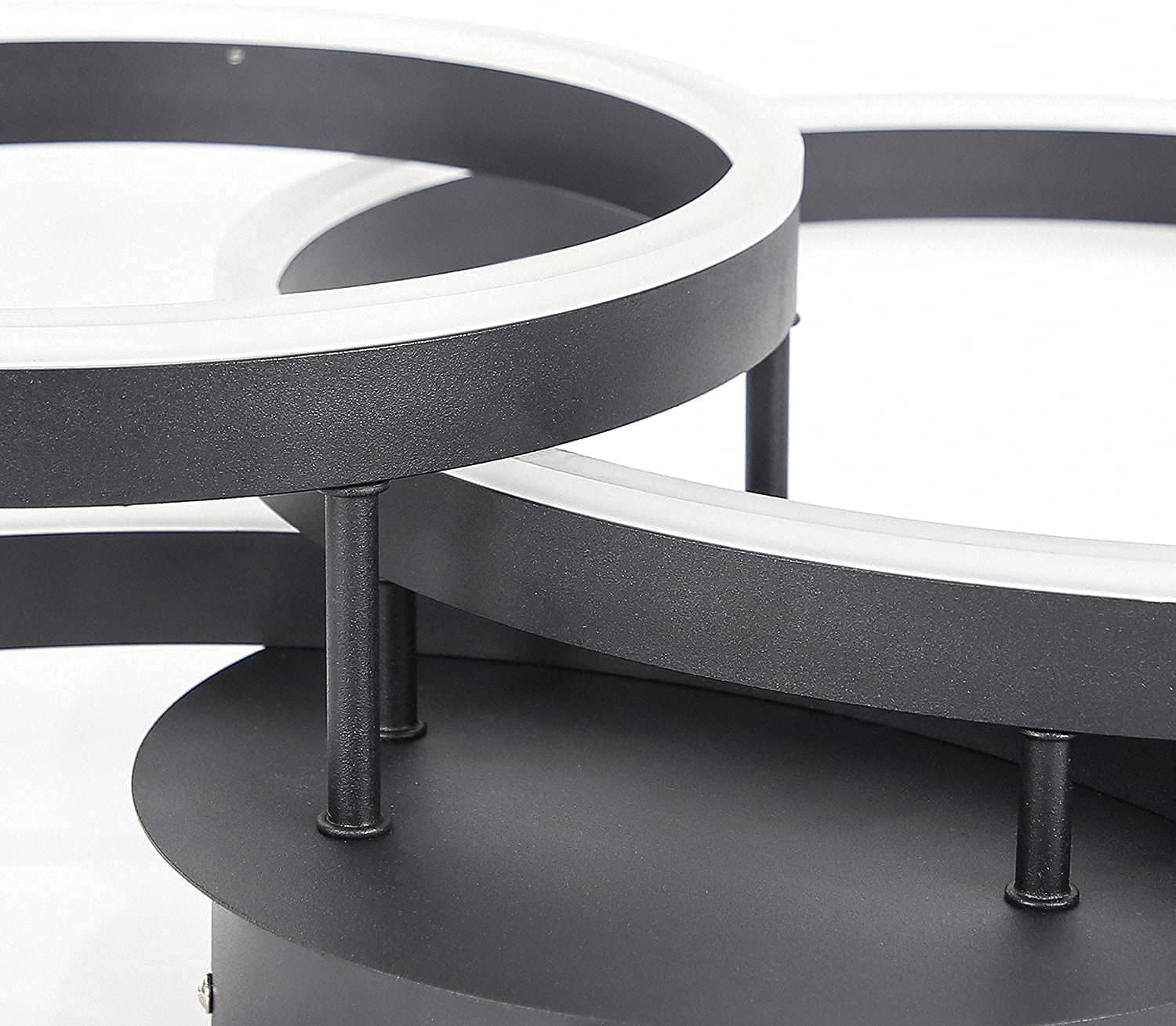 ZMH LED Deckenleuchte Wohnzimmer 3 Ringe Schwarz Dimmbar 82cm