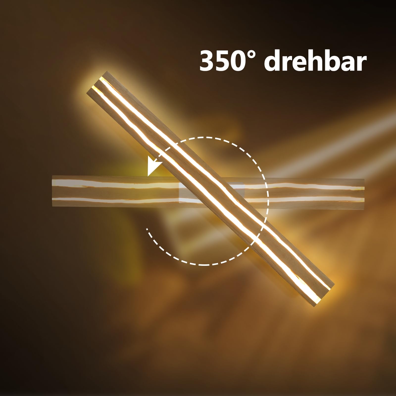 ZMH LED Wandleuchte Holz 100CM – Warmweiss innen