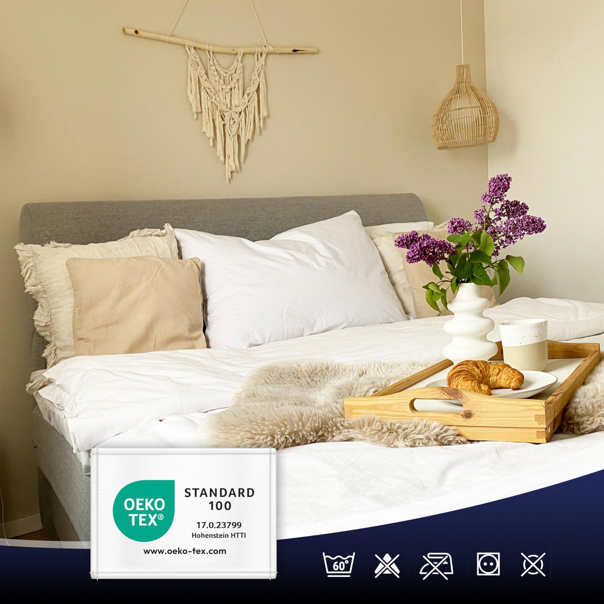 - Hochwertiger Bezug: Der Bezug besteht aus 100% feinster und extra dicht gewobener Mako-Baumwolle, die sich angenehm auf der Haut anfühlt.